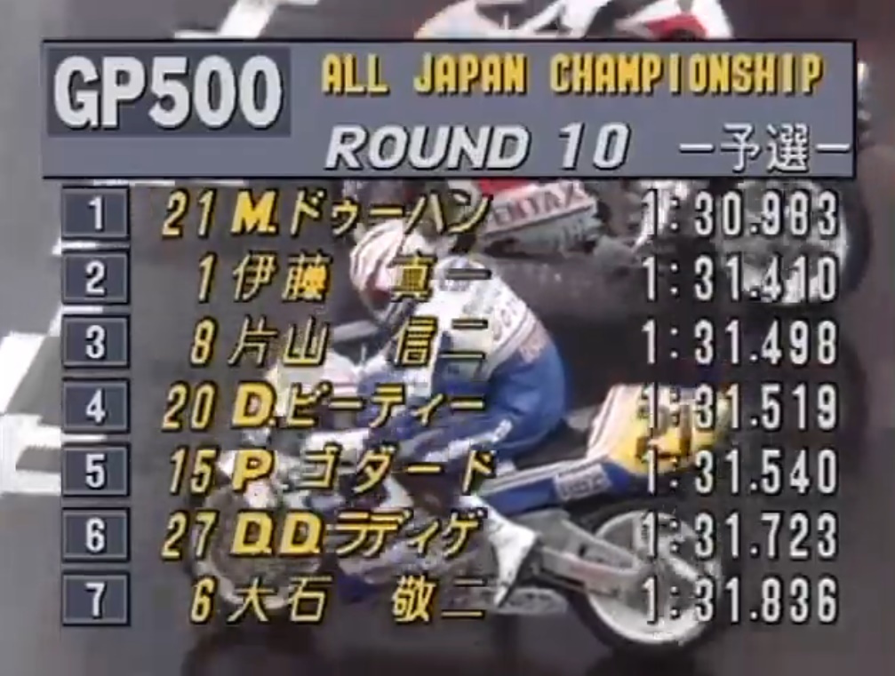 【1989年 WGP500 マイケル・ドゥーハン】この年ヤマハからホンダに移籍して世界GP500ccクラスにロスマンズホンダから参戦!初年度はゼッケン27のイメージがありましたが、21をつけた画像があり??となりました。日本GPでは平選手がTECH21カラーゼッケン21でポールを獲得、この時ミックは27番。
