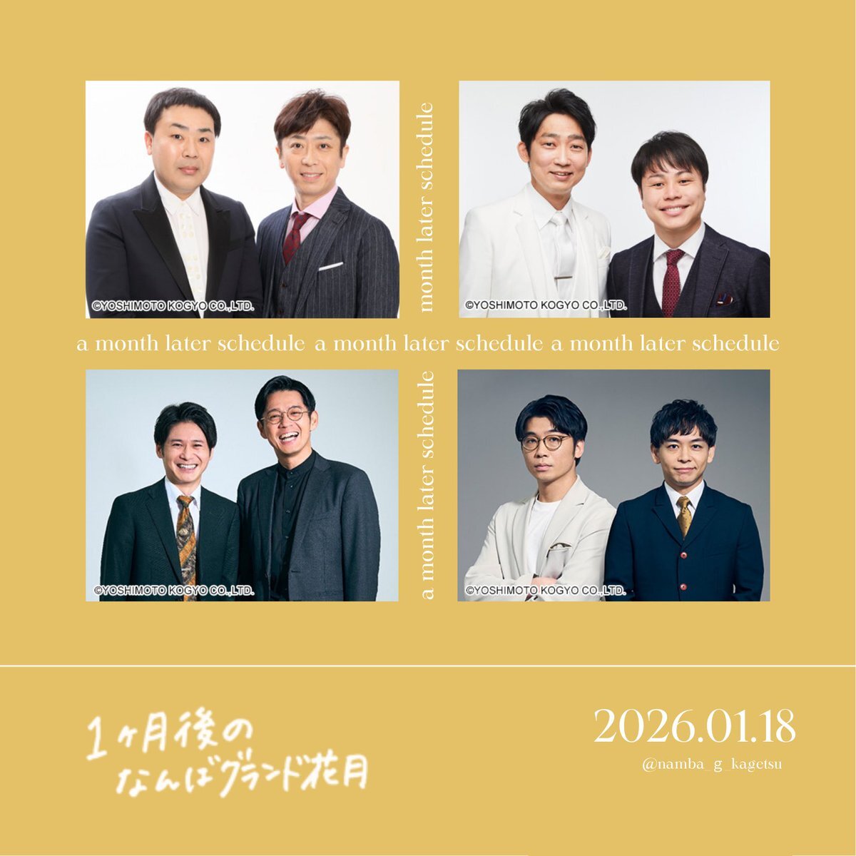 🫧a month later schedule 🫧 1ヶ月後 1/18(日) 大阪に遊びにきませんか❔ #なんばグランド花月 は #フットボールアワー #NONSTYLE #トット #さや香 など出演🧚♀️ #吉本新喜劇 は #すっちー 座長週🍬 #辻本茂雄 #川畑泰史 #島田珠代 など出演🎀 チケットは下のポストより ご購入いただけます🎫 pic.x.com/3HJwoAhIT9