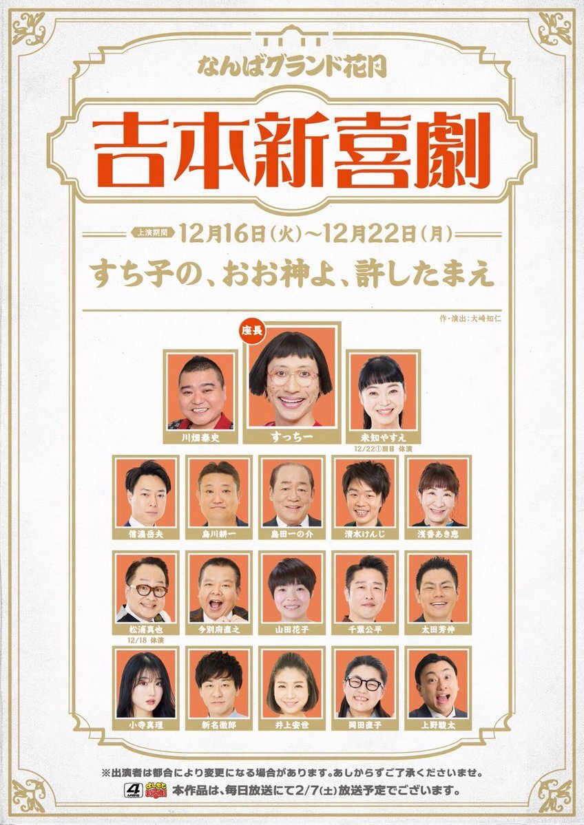 明日の #なんばグランド花月 は❔  ̄ ̄ ̄ ̄ ̄ ̄ ̄ ̄ ̄ ̄ ̄ 12/16(火)  ̄ ̄ ̄ ̄ ̄ 本公演は #NONSTYLE #ギャロップ #さや香 など出演 🫧 #吉本新喜劇 は #すっちー 座長週🍬 #川畑泰史 #浅香あき恵 が出演✨ 皆様のご来場をお待ちしております😌 pic.x.com/3wXyXTQfbA