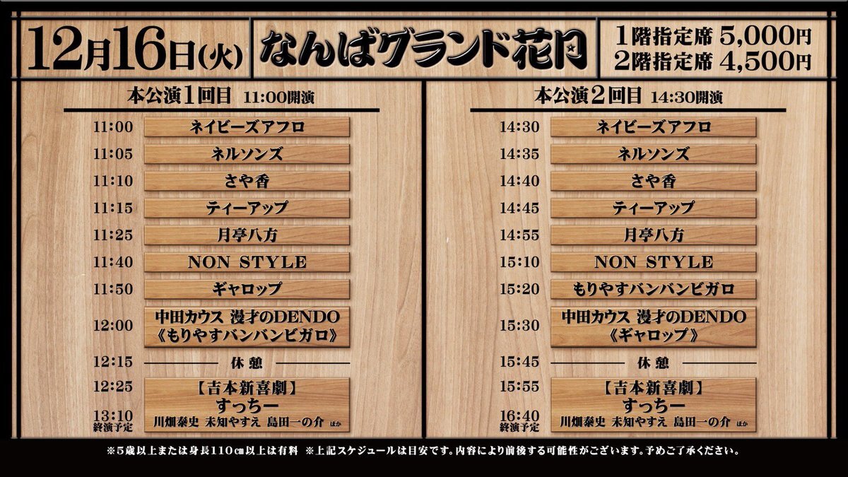 本日12/16(火)は #上方よしお さん #ぼんちおさむさんのお誕生日🎂 ˗ˏˋ なんばグランド花月 ˎˊ˗ \本日12/16(火)の券売状況/ ①回目公演 お席あり⭕️ ②回目公演 お席あり⭕️ ticket.fany.lol/ngk ※来場タイミングによって立見の可能性あり  ̄ ̄ ̄ ̄ ̄ ̄ 本公演は #NONSTYLE #ギャロップ pic.x.com/yiKYmPPNjJ