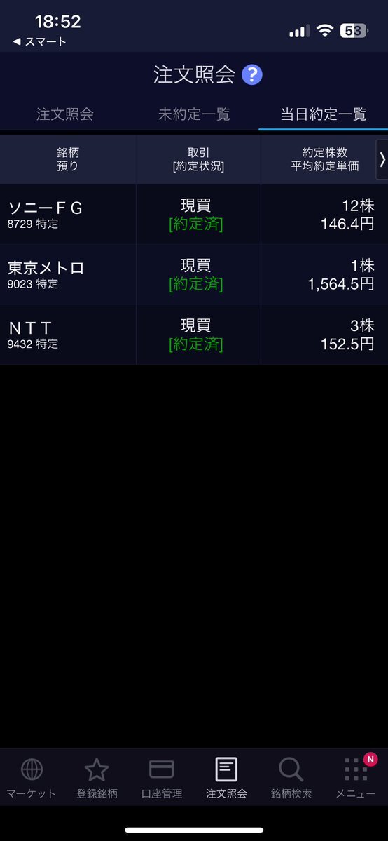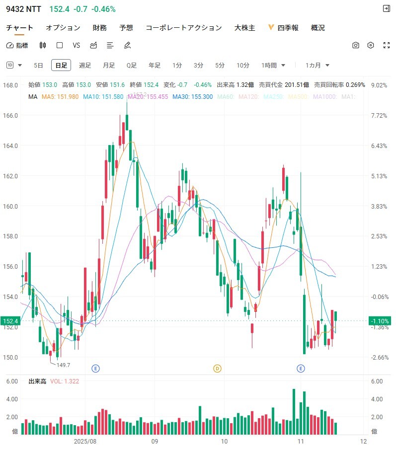 #NTT 3(1986)前152.1 後153 終152.5 #ソニーFG 12(112)前150 後147.6 終146 #東京メトロ 1(24)前1,564.5 #251119 pic.x.com/8aC4BYX7eE