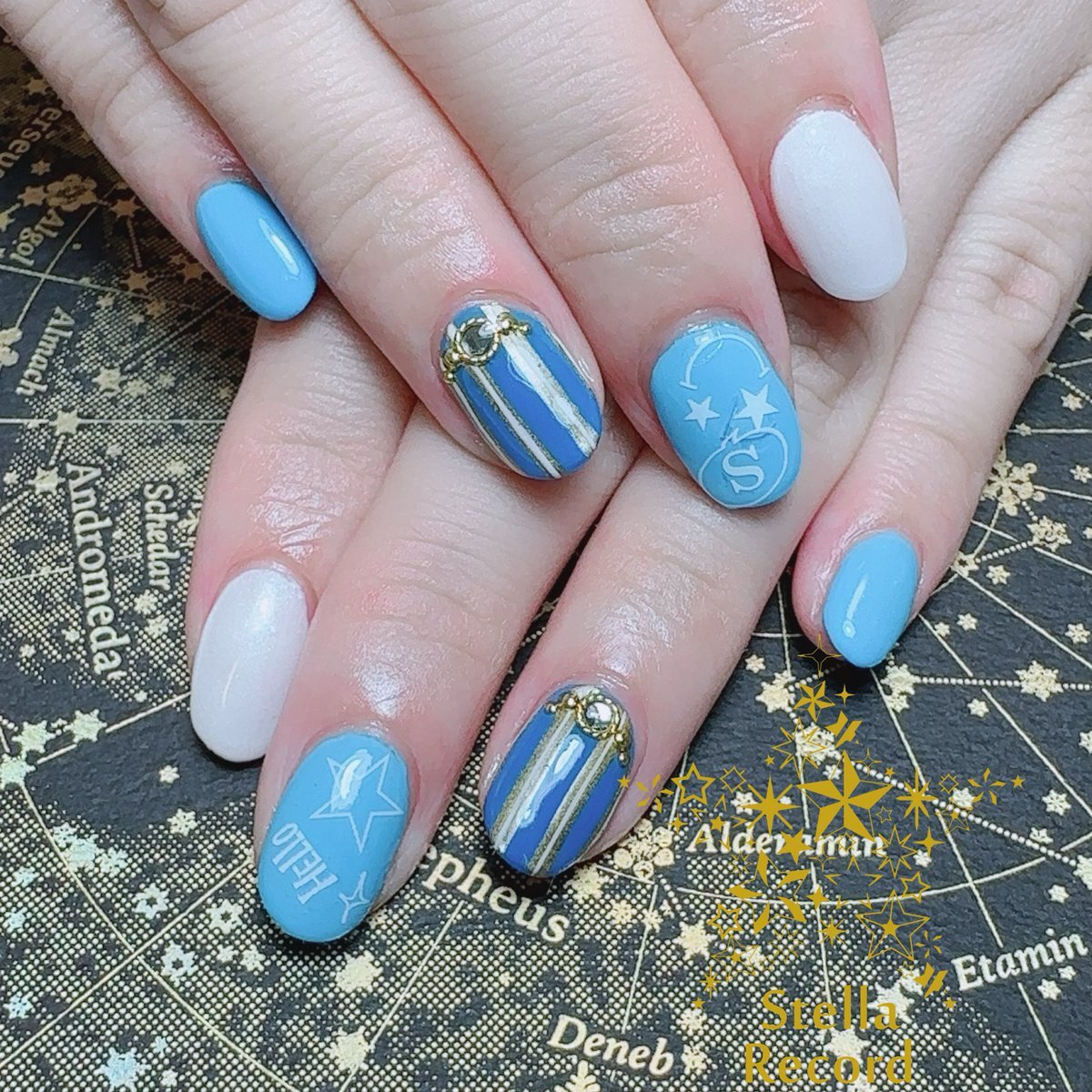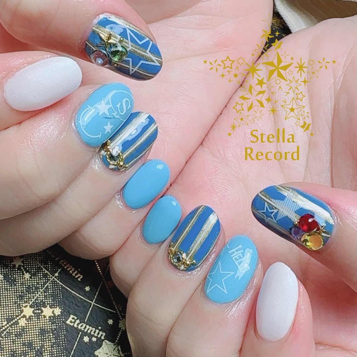 モチーフネイル 大原空 ライブビジュアルのジャケットのストライプにキャラクターカラーを入れてポップにデザインさせていただきました ライブ楽しんでいらして下さいね! #推し活ネイルコース120 nailbook.jp/design/9657826 #Nailbook #ネイルブック #そあぱ pic.x.com/ixVClYFOKU