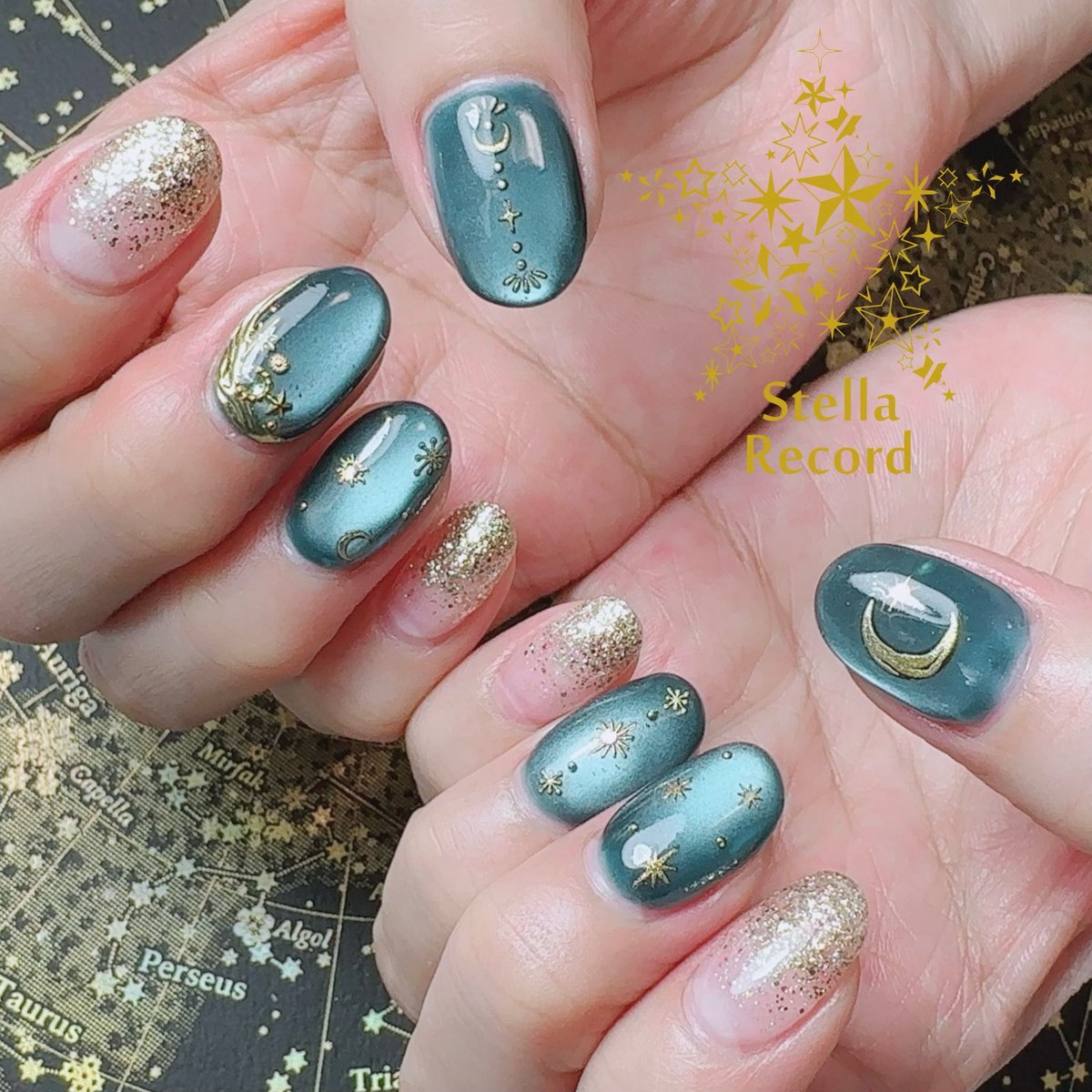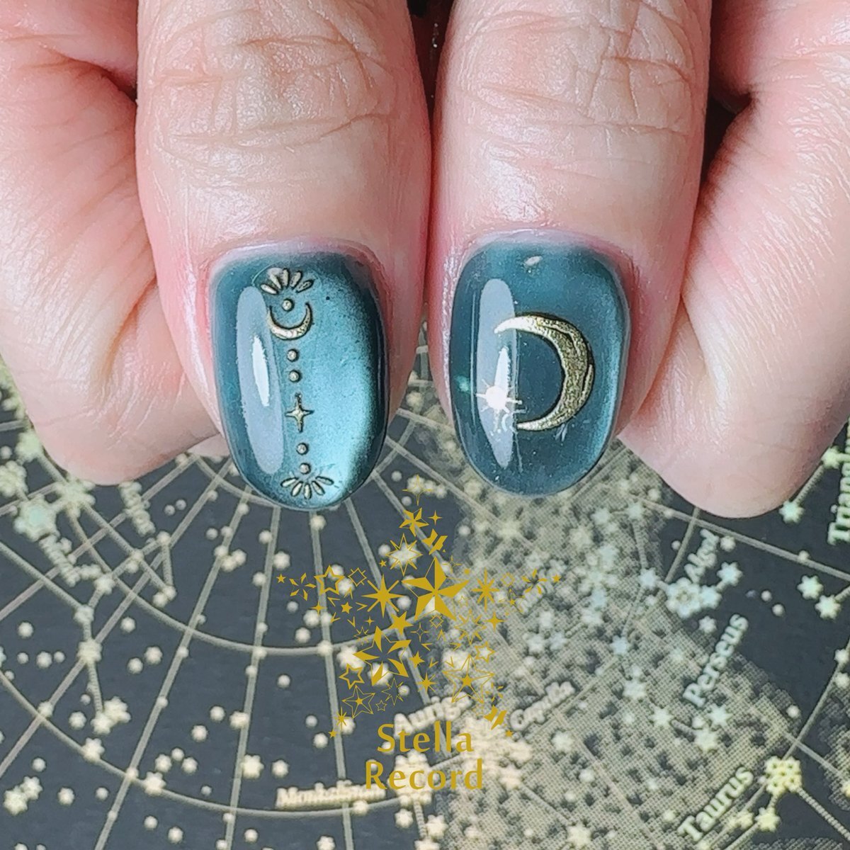 推しカラーマグネットネイル 推しカラーのマグネットネイルにキャラクターのイメージの月を入れた自分だけがわかる推し概念ネイルにデザインしました #推し活ネイルコース120 #追加オプション #ミラーネイル #マグネットネイル nailbook.jp/design/9633238 #Nailbook #ネイルブック pic.x.com/a9h7WegQiT