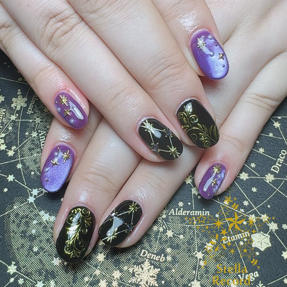 モチーフネイル 星導ショウ 髪色と宇宙のイメージを入れ概念ネイルにしたいとのリクエストからデザインさせていただきました #推し活ネイルコース120 #追加オプション #マグネットネイル nailbook.jp/design/9665131 #Nailbook #ネイルブック pic.x.com/v8O13XR1Ls