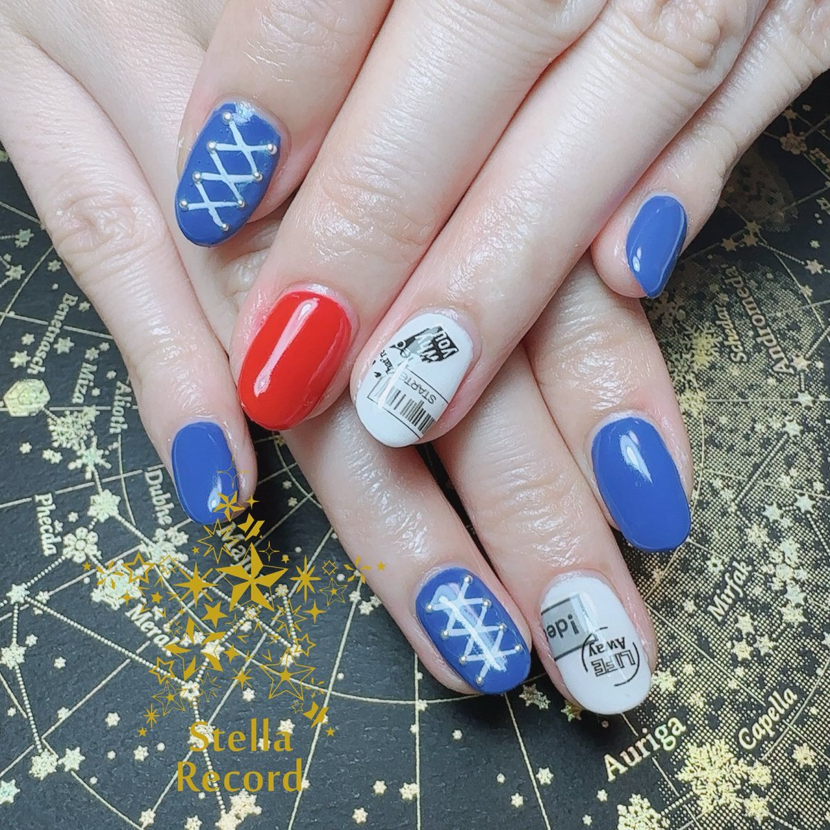 モチーフネイル 山田二郎 お客様がお気に入りのお衣装イメージとディビジョンカラーを入れてデザインさせていただきました ライブ楽しんでいらして下さいね🎤 #推し活ネイルコース120 nailbook.jp/design/9644226 #Nailbook #ネイルブック pic.x.com/k9PljyGDQ2