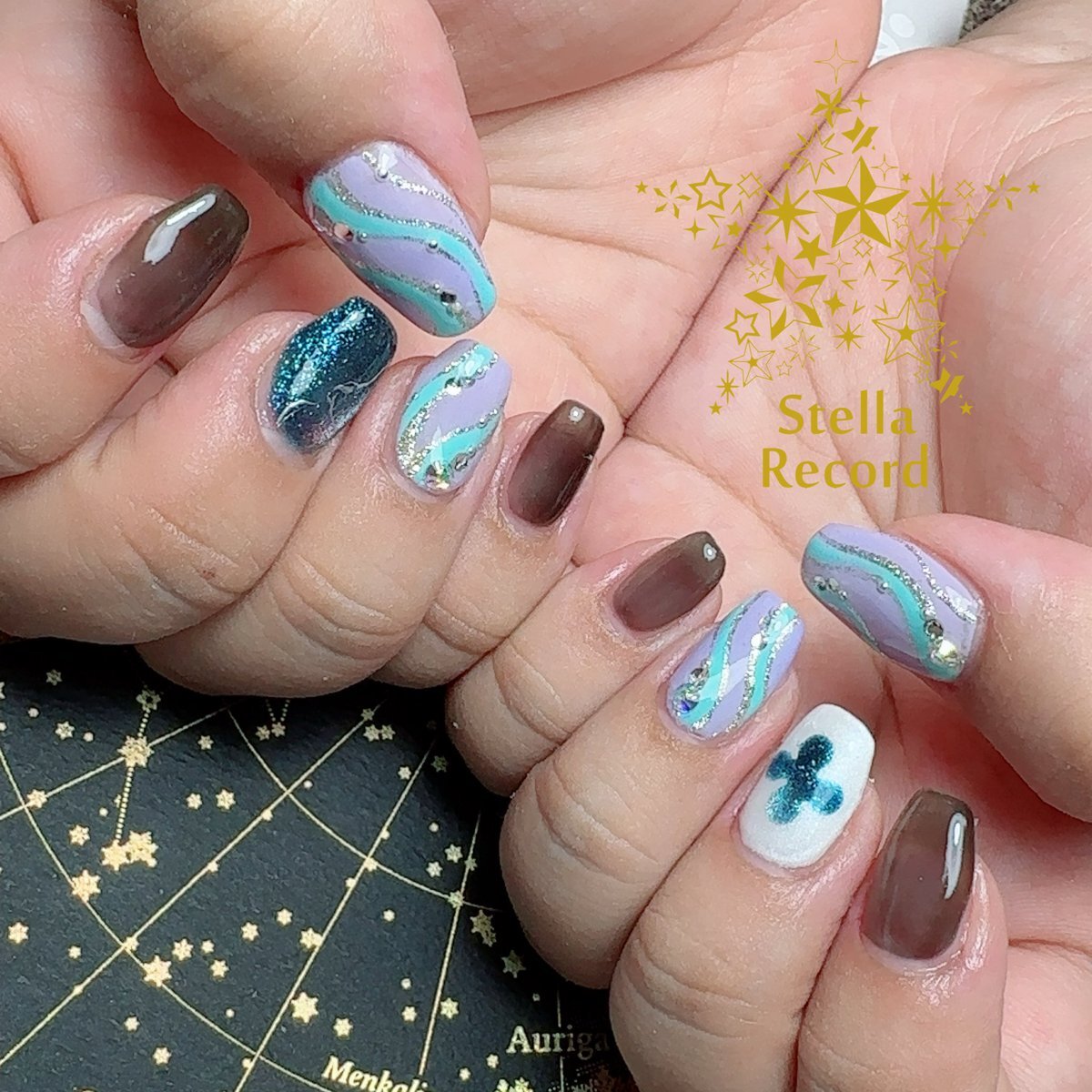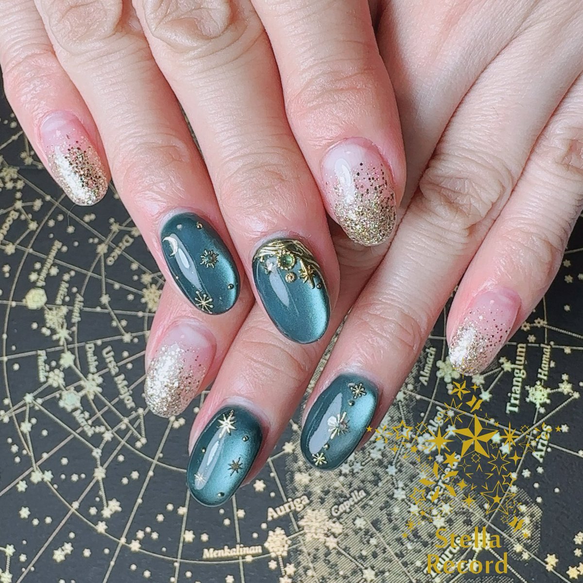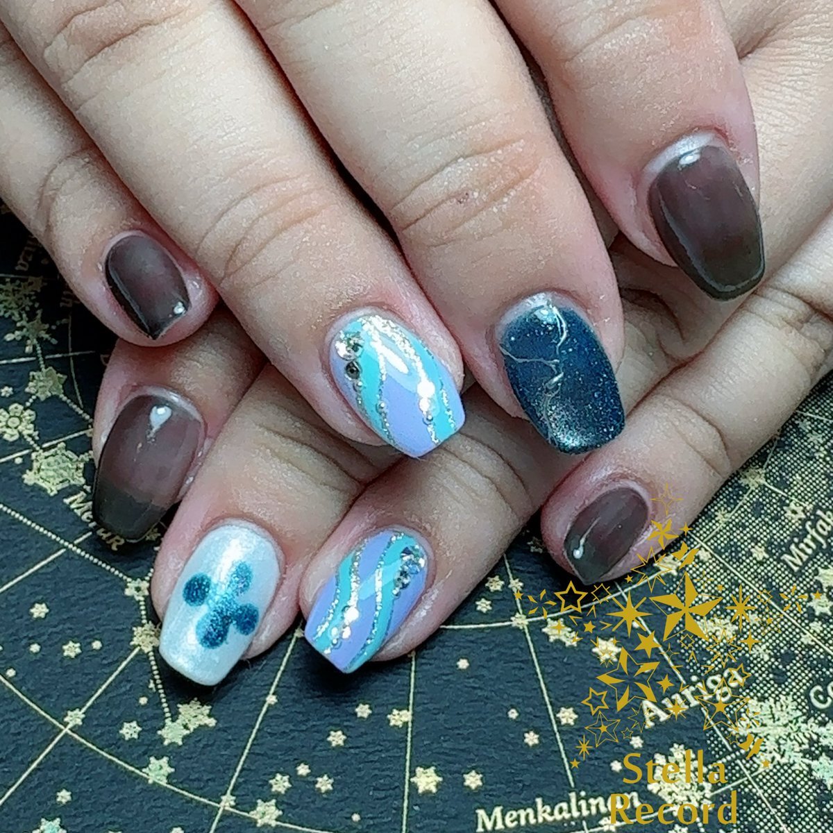 楽曲イメージネイル 『DIADEM』の曲のイメージとラギーくんのキャラクターカラーを入れてデザインさせていただきました ライブ楽しんでいらして下さいね #楽曲イメージネイルコース #追加オプション #マグネットネイル nailbook.jp/design/9655130 #Nailbook #ネイルブック pic.x.com/89tMUXJlmp