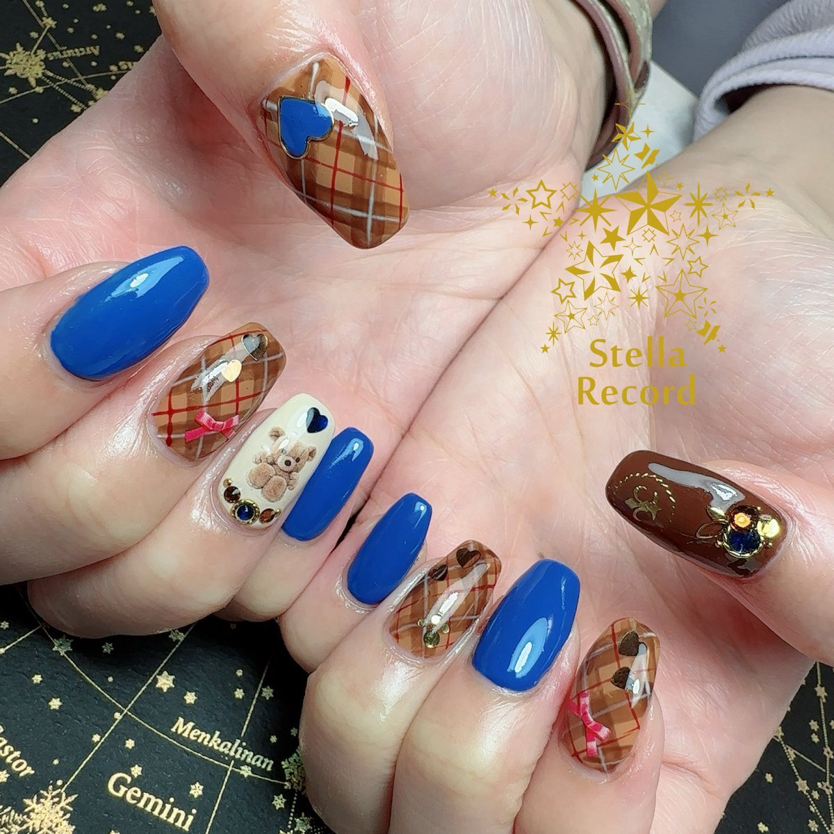 モチーフネイル 四季凪アキラ 「Beary School Time」のお衣装イメージとキャラクターカラーを入れてデザインさせていただきました お誕生日おめでとうございます🎂 #推し活ネイルコース120 nailbook.jp/design/9745607 #Nailbook #四季凪アキラ生誕祭2025 pic.x.com/RMoM7OvGD2