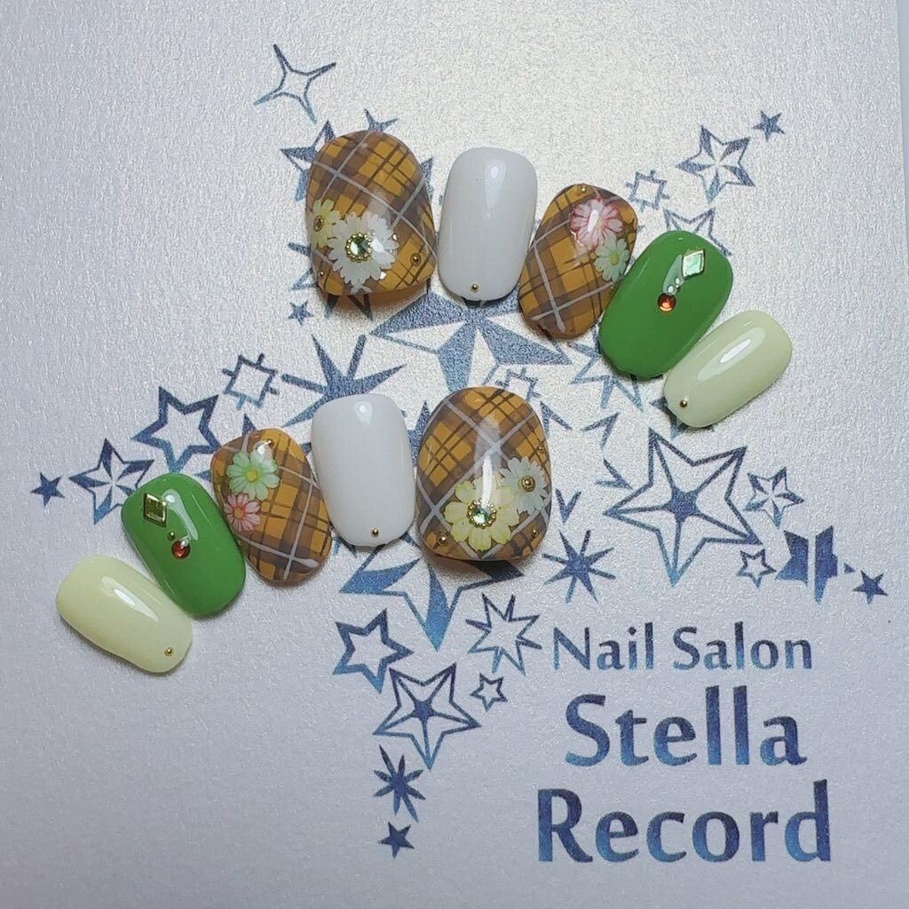 モチーフネイルチップ 遊木真 ライブグッズバックのチェックとお花を入れたいとのリクエストからデザインさせていただきました ライブ楽しんでいらして下さいね #推し活ネイルチップコース nailbook.jp/design/9718319 #Nailbook #ネイルブック pic.x.com/kUGCv5mmL4