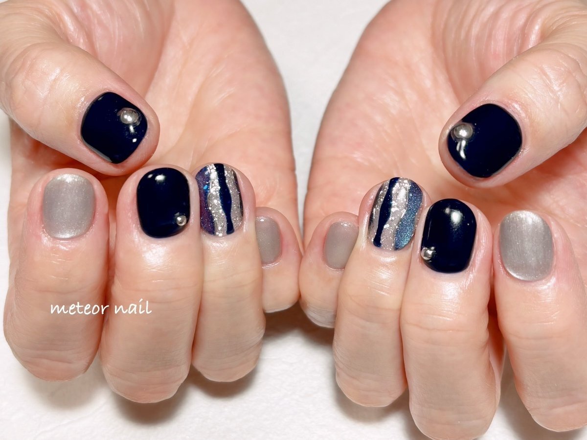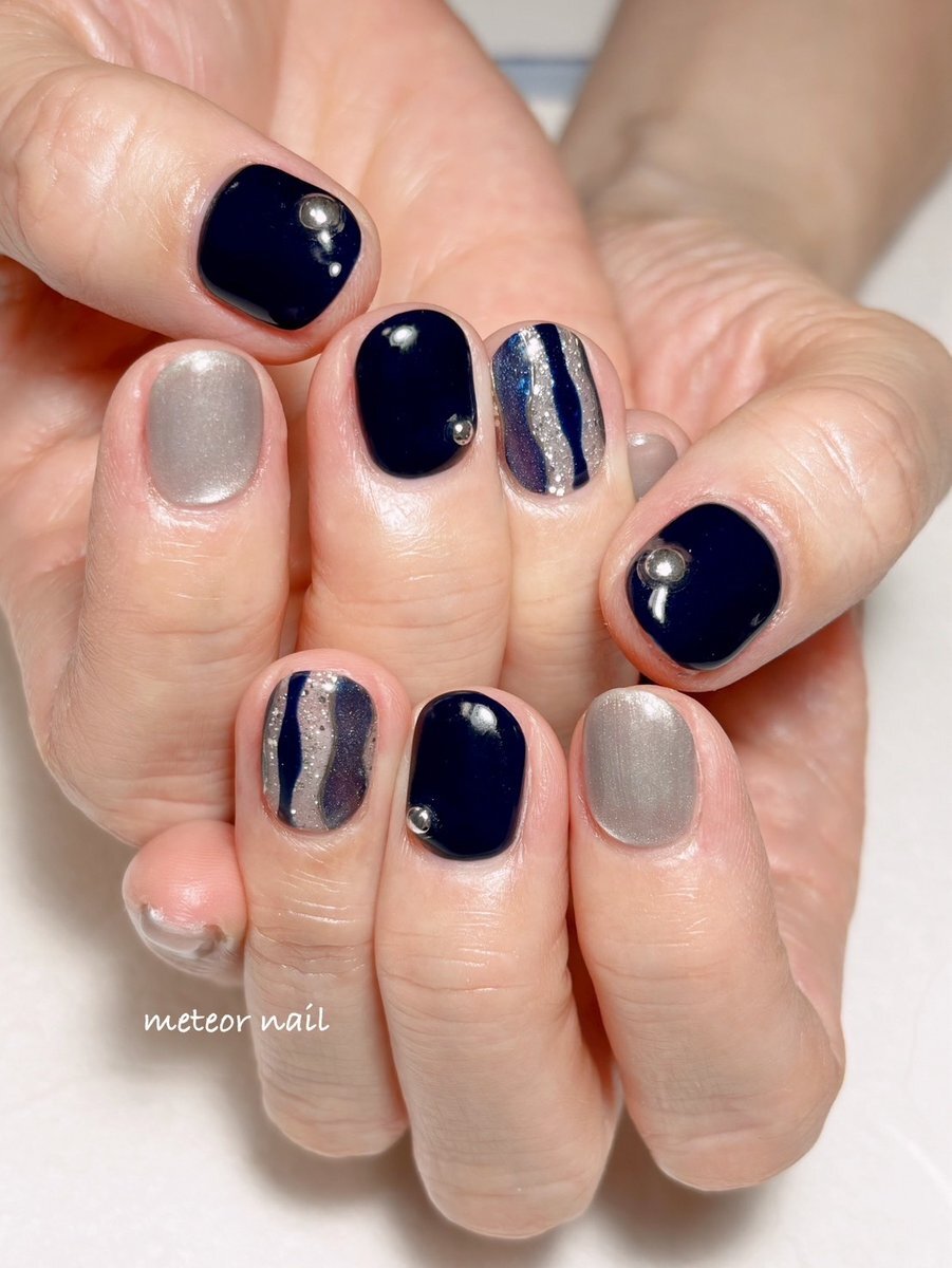 ネイビー×シルバーnail ‧✧̣̥̇‧ #ネイル #nail #nails #nailart #gelnail #nailstgram #nailswag #美甲 #ネイルブック #nailbook #ネイル... 詳細はこちら↓(ネイルブック) nailbook.jp/design/9634228/ pic.x.com/2RB2zzJ1ea