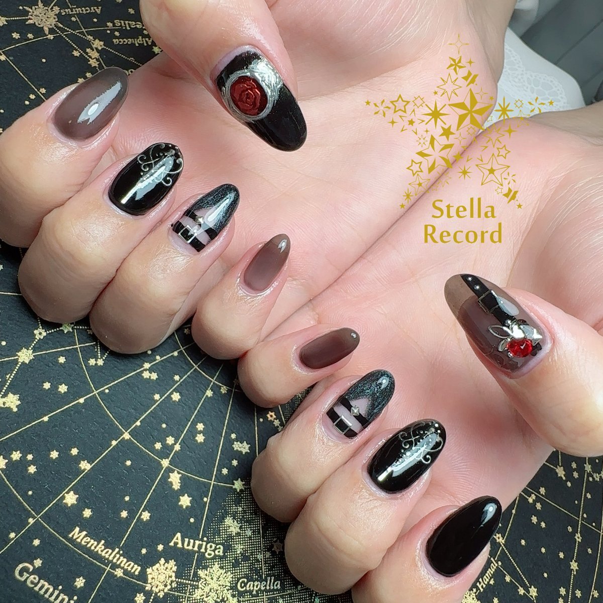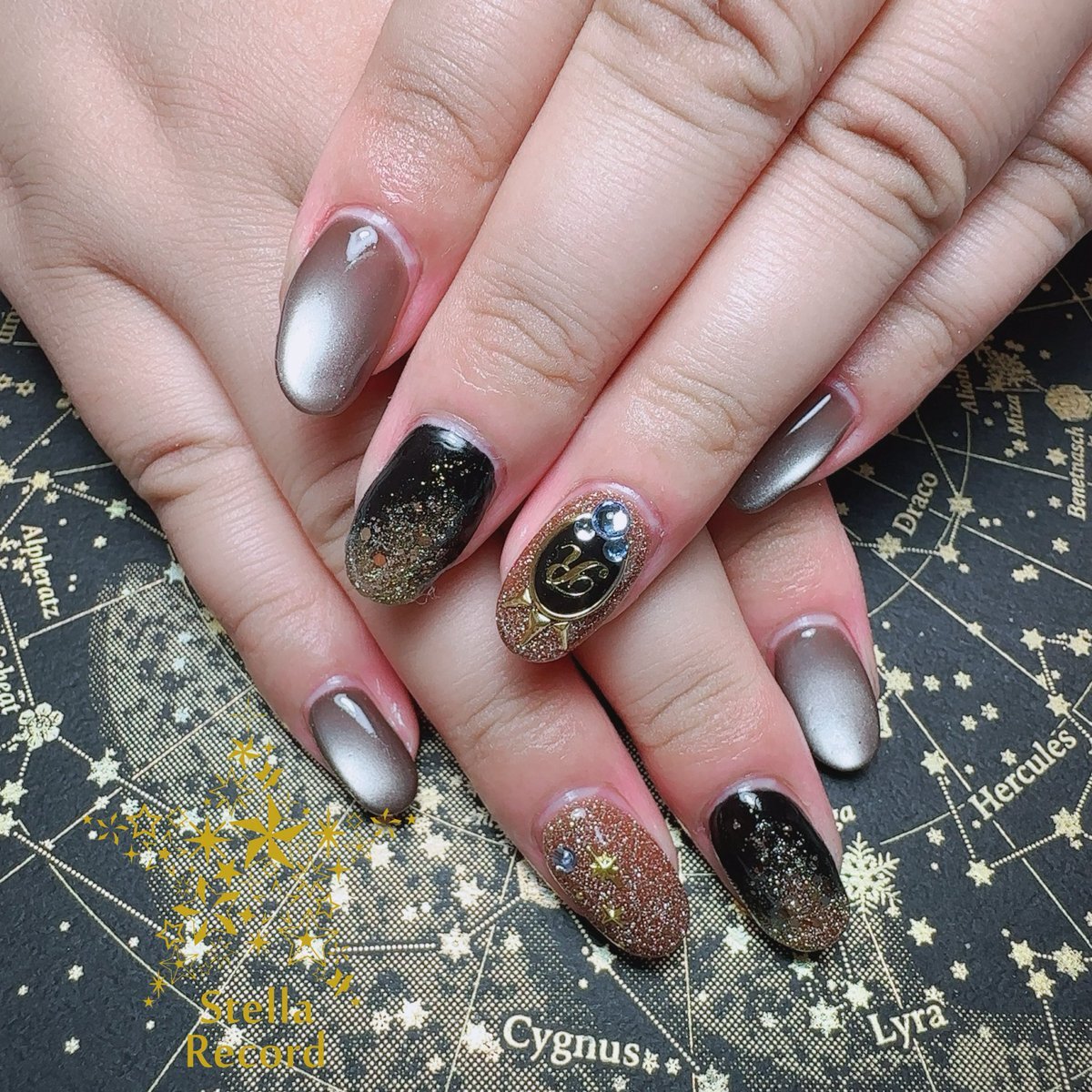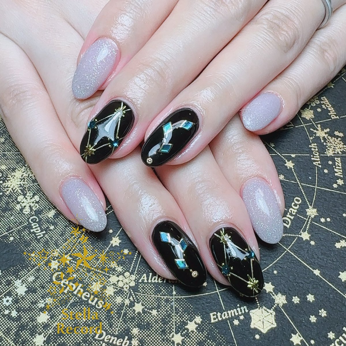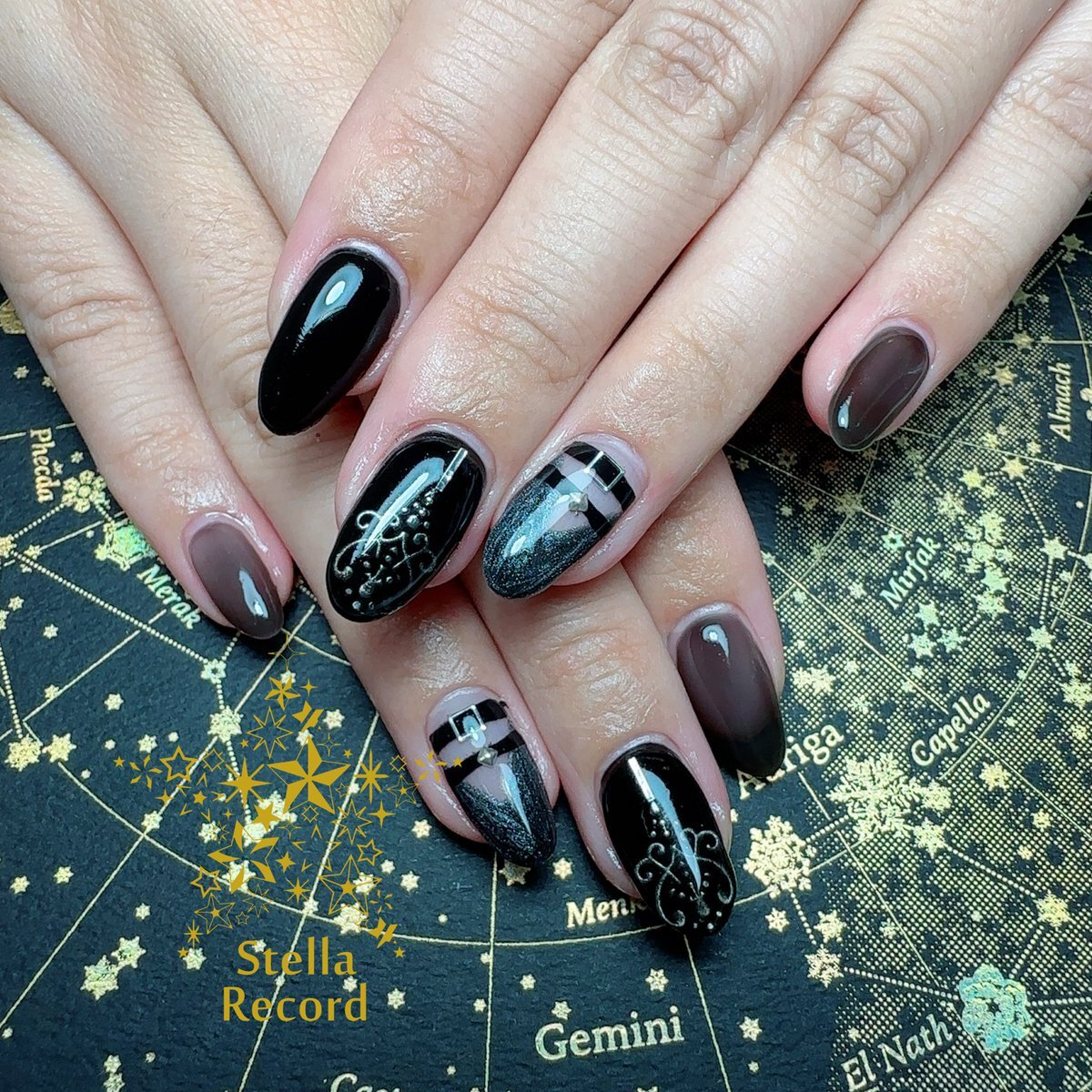 モチーフネイル 葛葉 新お衣装の胸元と指輪を入れたブラックネイルをとのリクエストからデザインさせていただきました #推し活ネイルコース120 #アート追加オプション #ミラーネイル #マグネットネイル nailbook.jp/design/9665136 #Nailbook #ネイルブック pic.x.com/AFixhhaIAI
