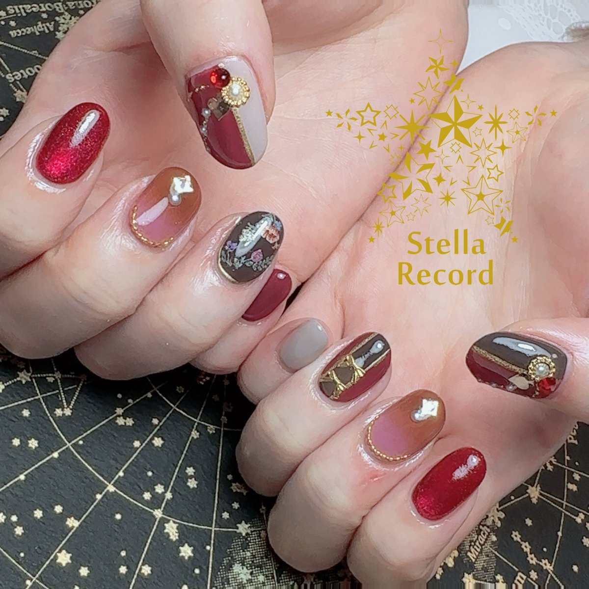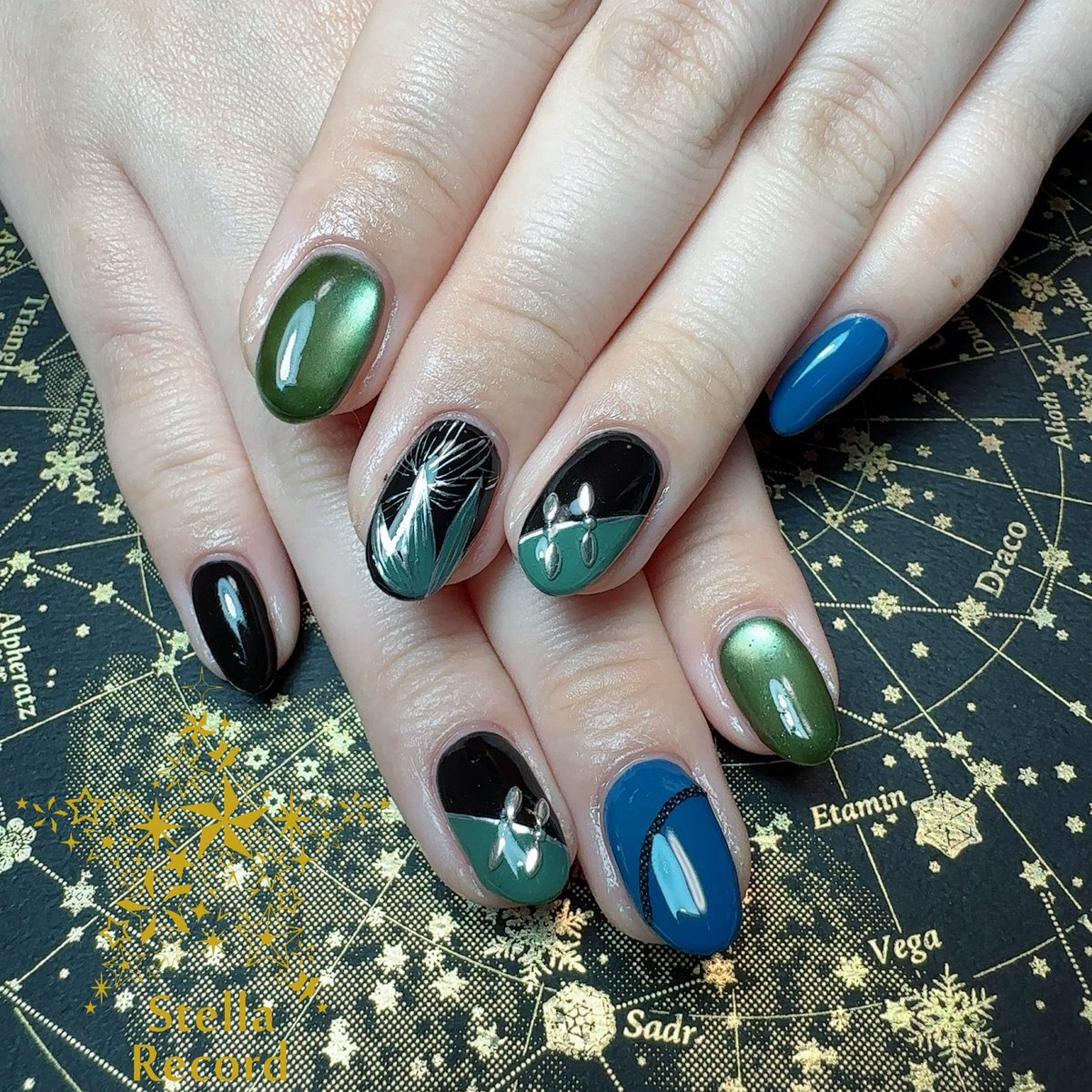 モチーフネイル ロタツ 『廻る奇想劇団』のお衣装をイメージしてデザインさせていただきました #推し活ネイルコース150 #アート追加オプション #ジュエリーネイル #マグネットネイル nailbook.jp/design/9748072 #Nailbook #ネイルブック pic.x.com/aJTyTKCbrv