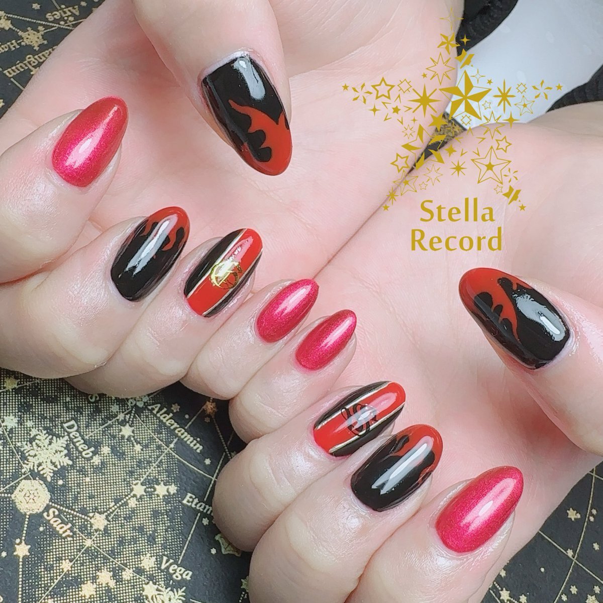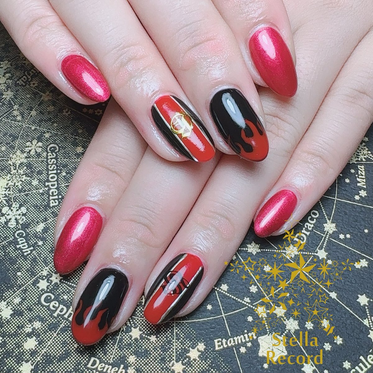 モチーフネイル レオナ・キングスカラー ナイトメアスーツのお衣装をイメージしてデザインさせていただきました 🎃インパにライブ楽しんでいらして下さいね! #推し活ネイルコース150 #追加オプション #マグネットネイル nailbook.jp/design/9644034 #Nailbook #ネイルブック pic.x.com/voO1fRHYkB