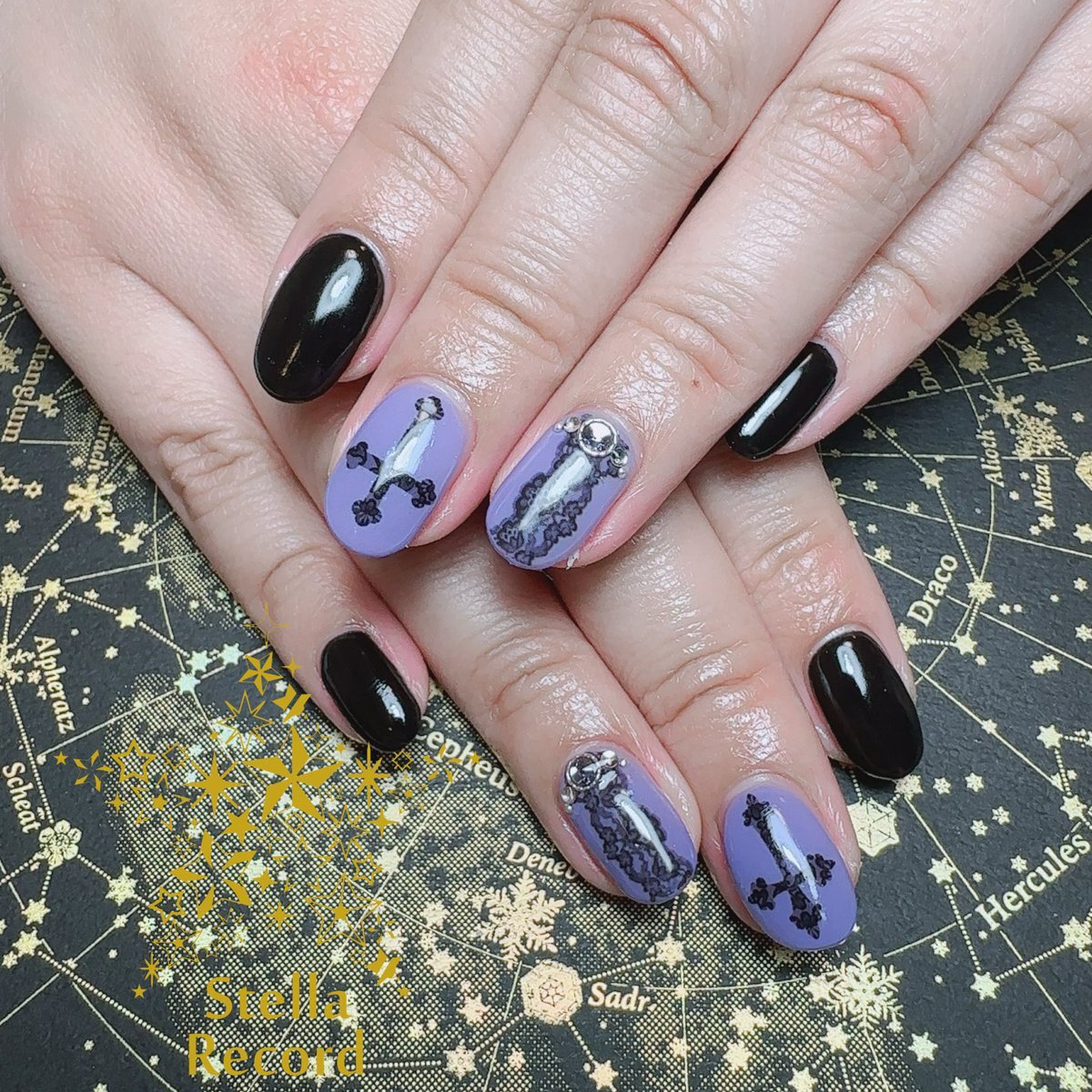 モチーフネイル 朔間零 ユニットカラーをベースに概念ネイルにデザインさせていただきました #推し活ネイルコース120 nailbook.jp/design/9661897 #Nailbook #ネイルブック pic.x.com/0amzXopaN6
