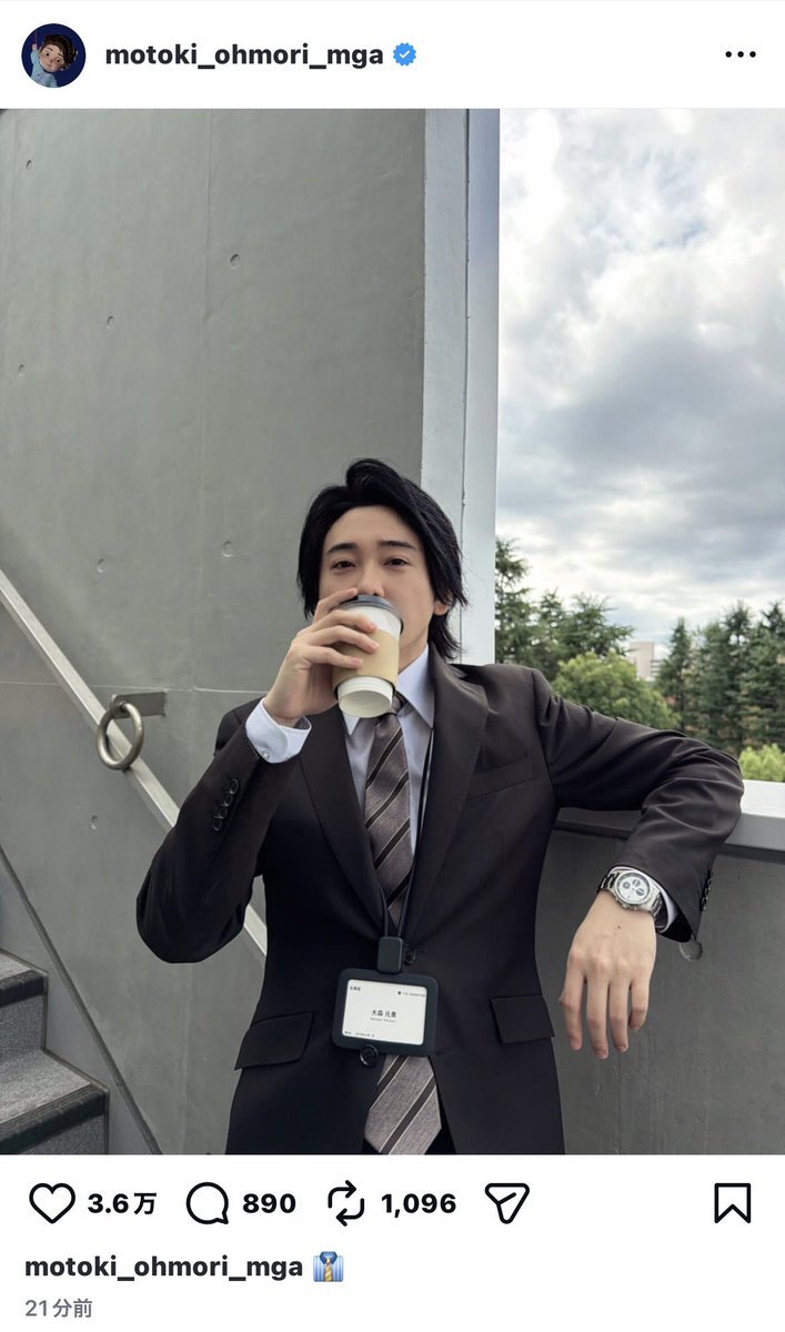 NIKKEIのCMにダーリン起用、大森元貴出演が公式発表されたら すーぐ、うちのボス、インスタにこれ↓ お気に入りだったんだろうな、早く投稿して皆に見てもらいたかったんだろうな〜(*σ¯ ³¯)σこのこのー #うちのボスはイケ #でも歌詞間違えすぎる #MrsGREENAPPLE #NIKKEI #ダーリン #大森元貴 pic.x.com/SYhYS40PK7