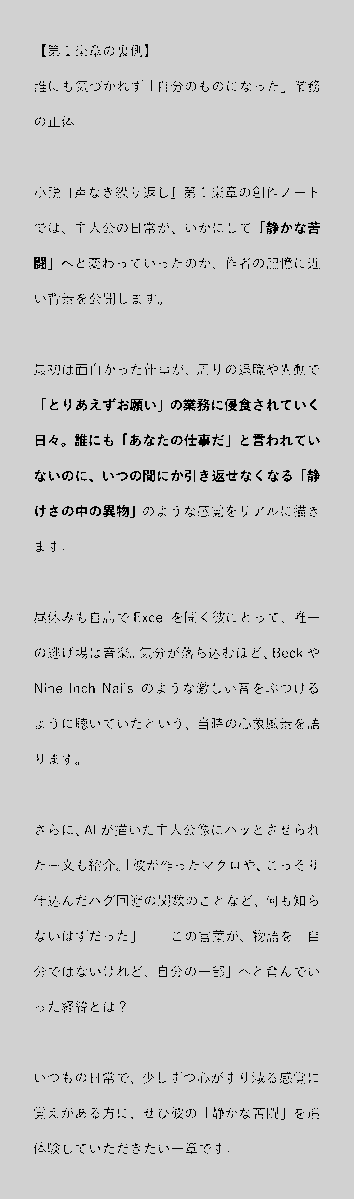 #星野霧詩 小説『#声なき繰り返し』 全楽章公開中!! 🔗lit.link/hoshinokirita 【創作ノートダイジェスト】 第1楽章|静けさの中の異物(アンダンテ) 400文字程度に要約してみました✍ #Beck #ベック #NineInchNails #ナインインチネイルズ #ToriAmos #トーリエイモス pic.x.com/TNTdmZXsew