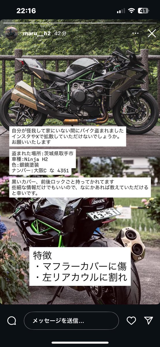 盗難被害が遭ったため、拡散してください。 #盗難 #拡散希望 #Ninja #H2 pic.x.com/qiDYOnFW4j