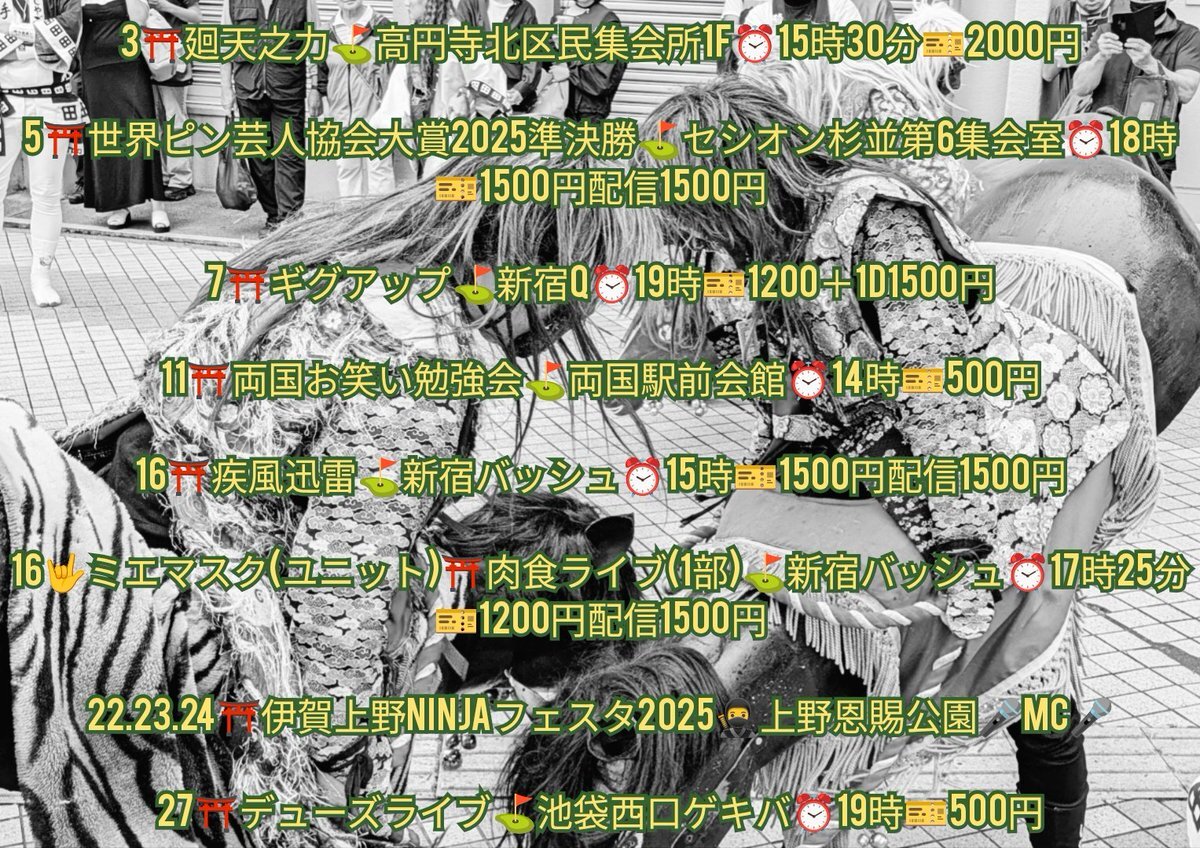 11月の三重県民お目三重ライブ🤟🤟🤟 メイタイブキとのユニット「ミエマスク」で初お目三重🤟🤟🤟 16⛩️ #肉食ライブ 22.23.24⛩️伊賀上野NINJAフェスタ🎤MC 27⛩️ #デューズライブ 皆さぁん👊やったーくん👊もミエマスクも全力前進 宜しくおねが!伊賀!ぎゅーーー🐂🐂🐂