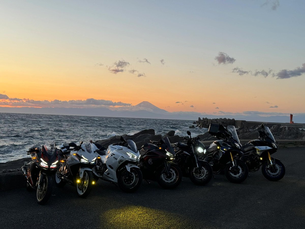 夕焼けに染まる海とバイクたち🌅 走り切ったあとに並べて眺めるこの時間がたまらない。 波の音、エンジンの余韻、今日も最高の一日✨ またこの景色を見に走ろう😊 #バイクのある風景 #ツーリング #Ninja #夕焼け pic.x.com/9uwIxQoiJq