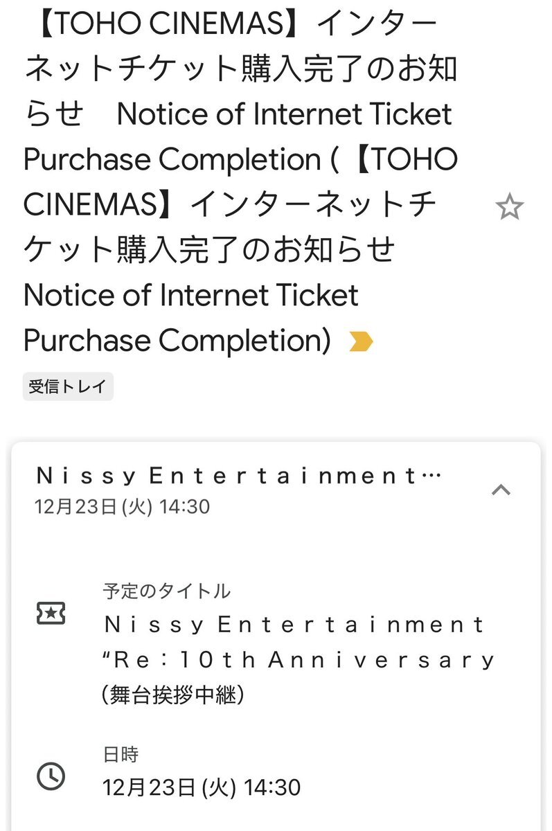 たぶん🎫取れた!ハズ、、、、不安🥶 1番のWISHは 舞台挨拶で声を聴くことじゃなくて またNissyの歌声を聴くことだから🌠 お顔見れるだけでも充分だよ🥺 焦らずゆっくり治療してね🏥 遠くからだけど公開初日㊗️します! #Nissy #Nissy_Re10thTHEMOVIE pic.x.com/k1NX0OkZ1f