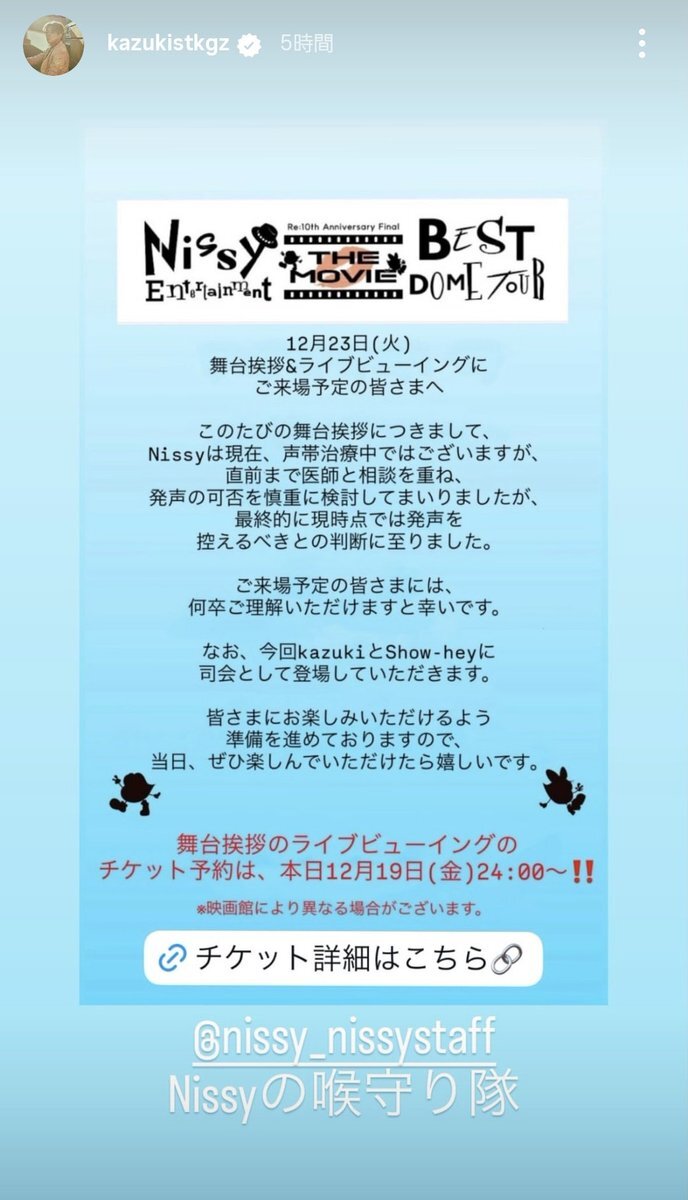 わぁ〜Nissyだぁ✨💋😊🫶🏻 初日舞台挨拶のチケットが、東京🗼の激戦区で予約を参戦しないといけなくなったので、こちらがあーだこーだと手震えながら戦っている間に、こんな素敵なストーリーが✨ Nissyに会えるの本当に楽しみ🫶🏻🥰 #Nissy pic.x.com/gUSv0NPtBZ