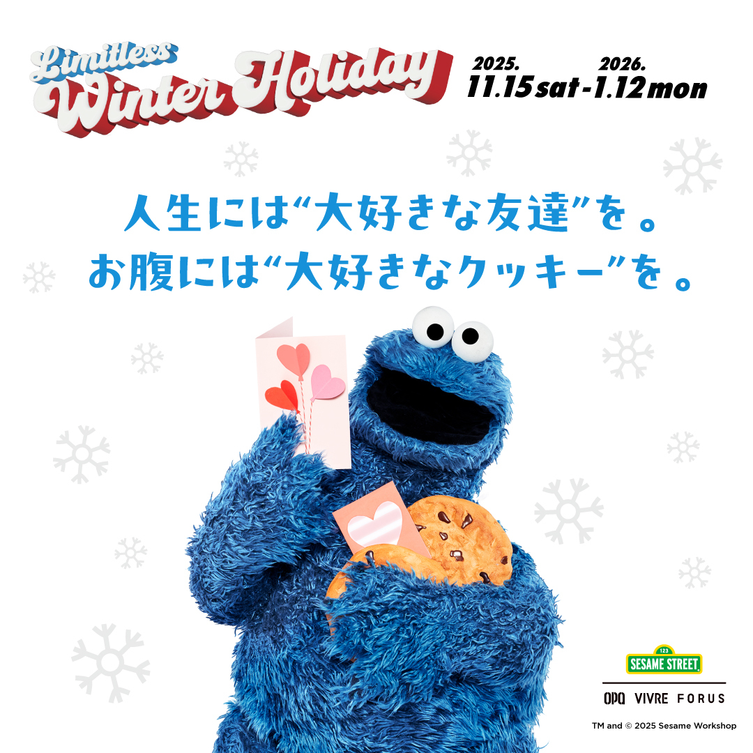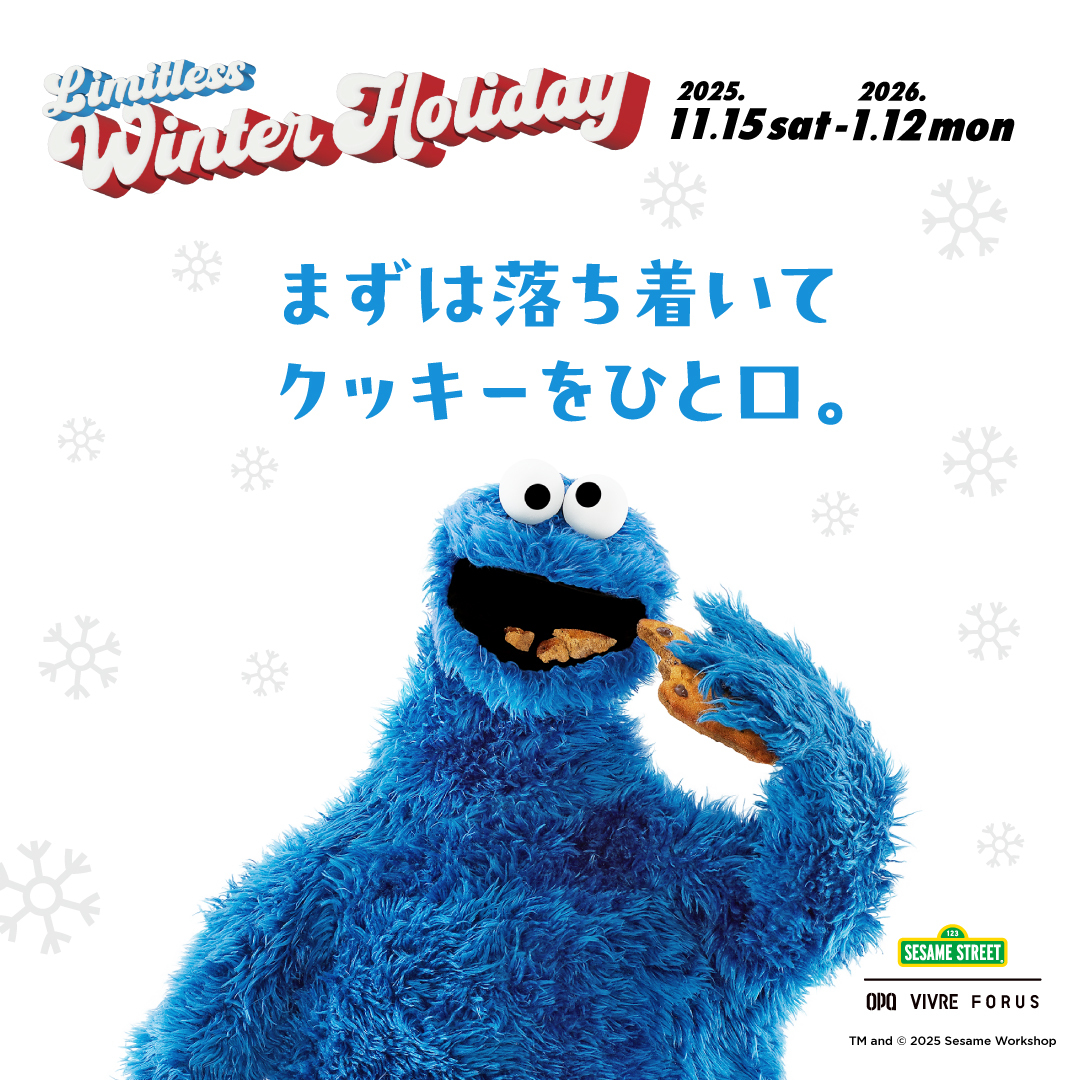 今年の冬は、#セサミストリート#OPA #VIVRE #FORUS がコラボ! 「Limitless Winter Holiday」本日からスタート✨ クッキーモンスターと一緒に、思いっきりホリデーシーズンを楽しもう🍪💙 詳しくはこちら↓ opa-club.com/contents/m_fla… pic.x.com/qfycUKOPfi