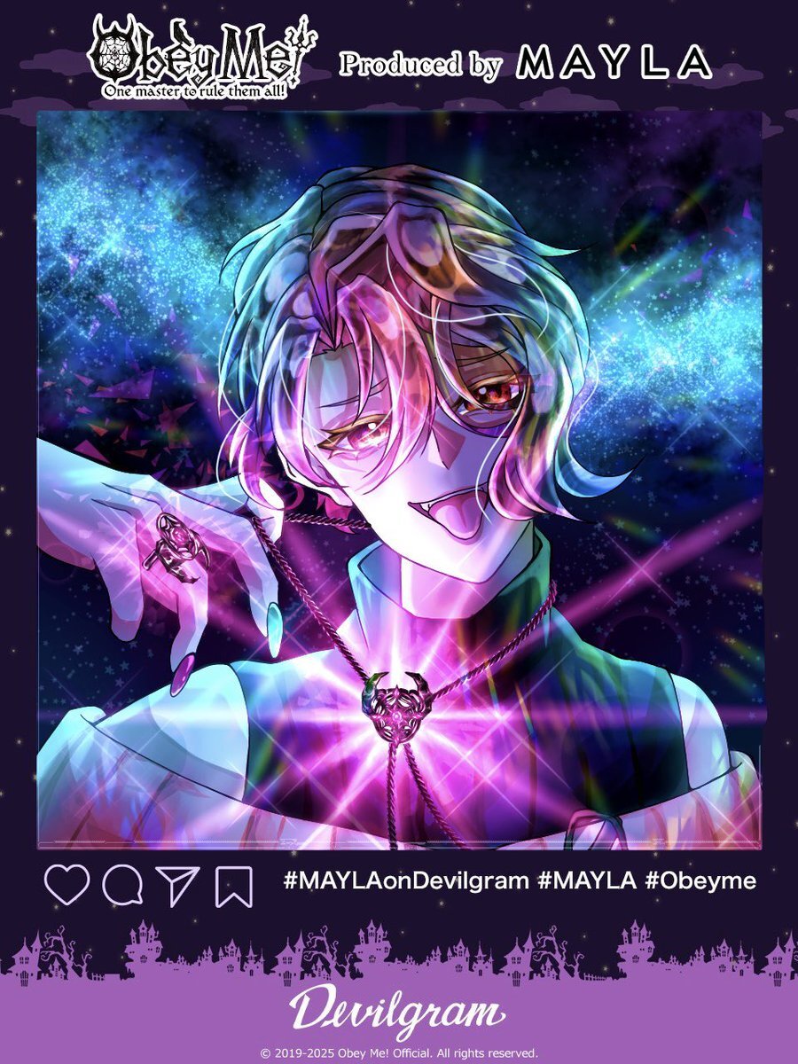 素敵な企画ありがとうございます!✨ アイテムもとっても素敵で毎回ワクワクが止まりません!!💜イラストを描いていて改めてデザインのこだわりや素晴らしさを実感しました…!!💕 #MAYLAonDevilgram #MAYLA #obeyme pic.x.com/hLOgHIRRnz