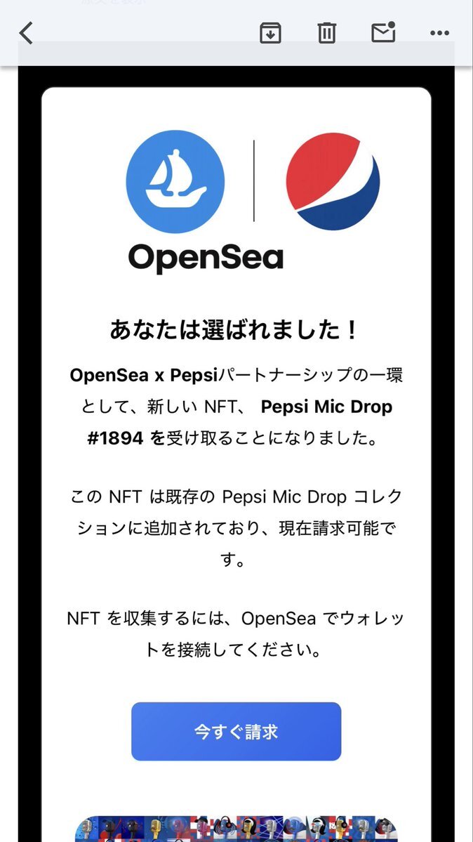 自分で調べた限り、詐欺だと判断したけど、フィッシングメールだよね? 日本語の情報がない。 #ペプシ #pepsi #NFT pic.x.com/24qWnNXzsd