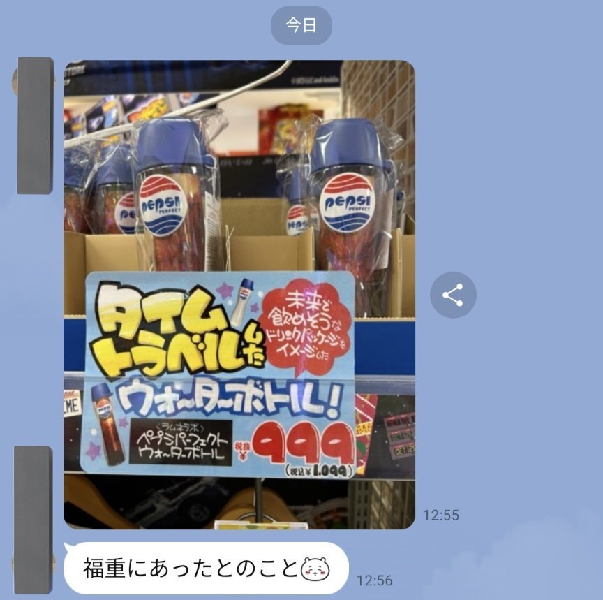 都内は全滅だったので、友達に協力してもらって遠くに行った! ペプシボトル買えた!特典のピンバッジはホバボ引けず、ひたすら40だった 寒いので早速バスボム使う〜! そしてホバボをブチ当てるしかない。 #バックトゥザフューチャー #BTTF #pepsi pic.x.com/XfpPZnvBEb