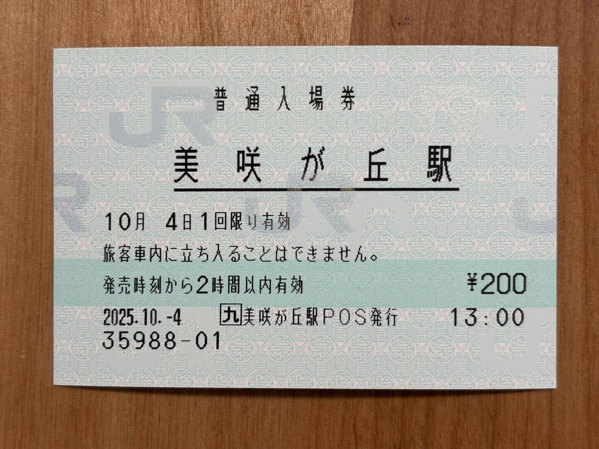 筑肥線の美咲が丘駅を訪問 1995年開設の割と新しめの駅で、E-POSのみ設置されており入場券を購入。曜日によって営業時間が異なり、訪問日は昼間の1時間半しか営業していなかった。 2025年10月4日 #POS #入場券 pic.x.com/r7peDIm6ig