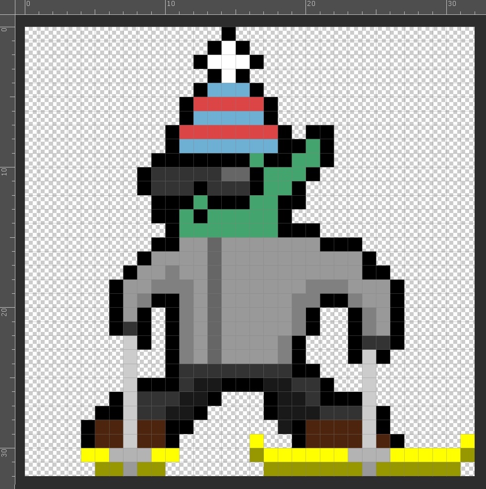 スキーゴブリン。 スノボトナカイとレースをするかもしれない。 #pixelart #ドット絵 pic.x.com/tpJ3W8Hug9