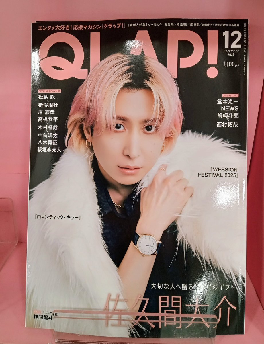 【#佐久間大介 (#SnowMan)】 🩷美しすぎるさっくん表紙🩷 「#QLAP (クラップ) ! 2025年 12月号」 お品切れしておりましたが 本日再入荷しましたー😭😭😭 映画『ナイトフラワー』の撮影秘話や 自分を動かす原動力を語ったインタビューは必読です✨ tower.jp/item/7609488 #タワサガは佐久間一派 pic.x.com/AbIZUzcErE