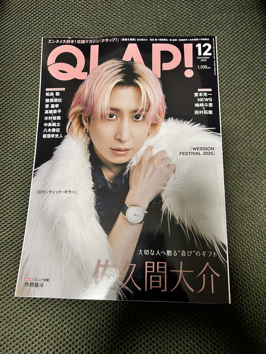 【11/14発売】QLAP! 2025年12月号 表紙は佐久間大介(Snow Man) 「今」を生きる彼の、素の表情が垣間見えるのが良いね。静かに刺さるインタビューも。 🔻 amazon.co.jp/dp/B0FX551RVG/… #PR #佐久間大介 #QLAP 11/17 09:26