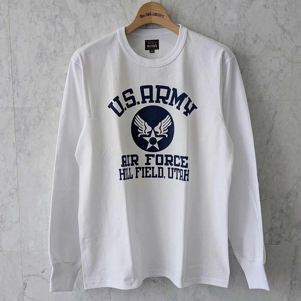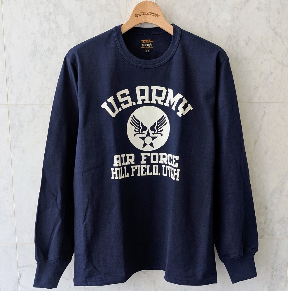 #リアルマッコイズ名古屋 新作 MILITARY L/S TEE / U.S. ARMY AIR FORCE, HILL FIELDが入荷! 定番の8オンスの丸胴ボディーにバインダーネックを備えた堅牢なロングスリーブTシャツ。 エアフォースマークがモチーフの一着。 カラーはホワイト、ネイビーの2色。 #TheREALMcCOYS #REALMcCOYS pic.x.com/Fzh0UdhFYX