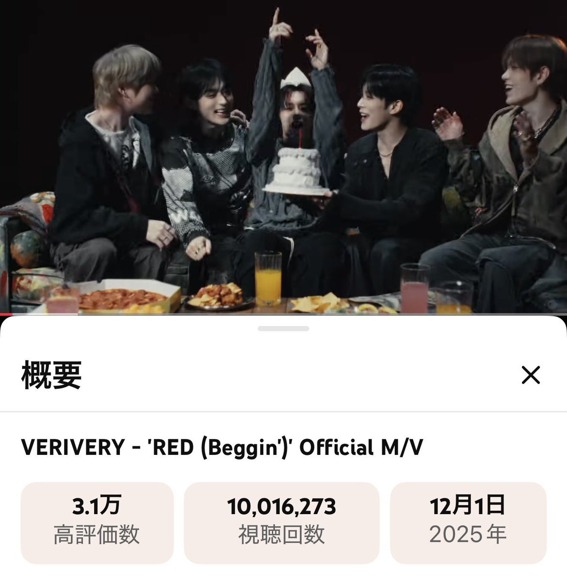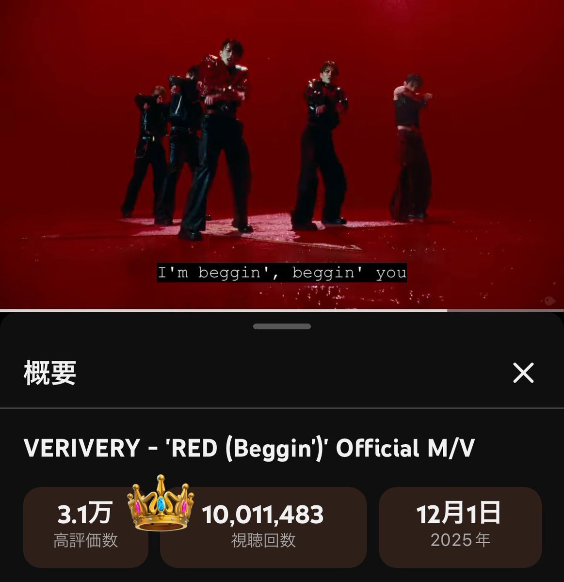 RED (Beggin') Official M/V 1000万回再生突破おめでとう🎉 起きたら超えてたぁぁぁ!!! 調整入りすぎて遅くなっちゃったけど... #베리베리 #VERIVERY #ベリベリ #RED #RED_Beggin #Lost_and_Found pic.x.com/K7kbOXqTE1