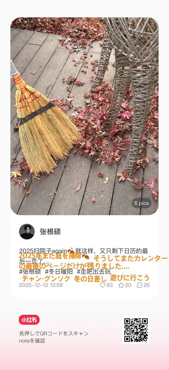 グンちゃん #小紅書 #RED 更新🙌🏻✨ 张根硕 2025日院子again🍂 就这样,又只剩下日历的最后一了.... #弘根碩#冬日暖阳#走吧出去玩 xhslink.com/m/1COSJCgf2rE *翻訳は写真に #チャン・グンソク #장근석 #JangKeunSuk #張根碩 #JKS #グンちゃん #ぐんちゃん #근짱 pic.x.com/cgUPYhcL28