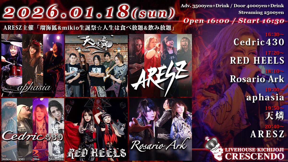 #RED HEELS #メタルユニット #ライブ案内 #1月18日(日) #吉祥寺Crescendo #開場:18時00分 #開演:18時30分 #ARESZ主催 瑠海狐 & mikio 生誕祭 #出演時間:17時20分~17時50分 #終演後物販:21時10分~22時00分 #出演:Cedric430/RED HEELS/Rosario x.com/REDHEELS_METAL…