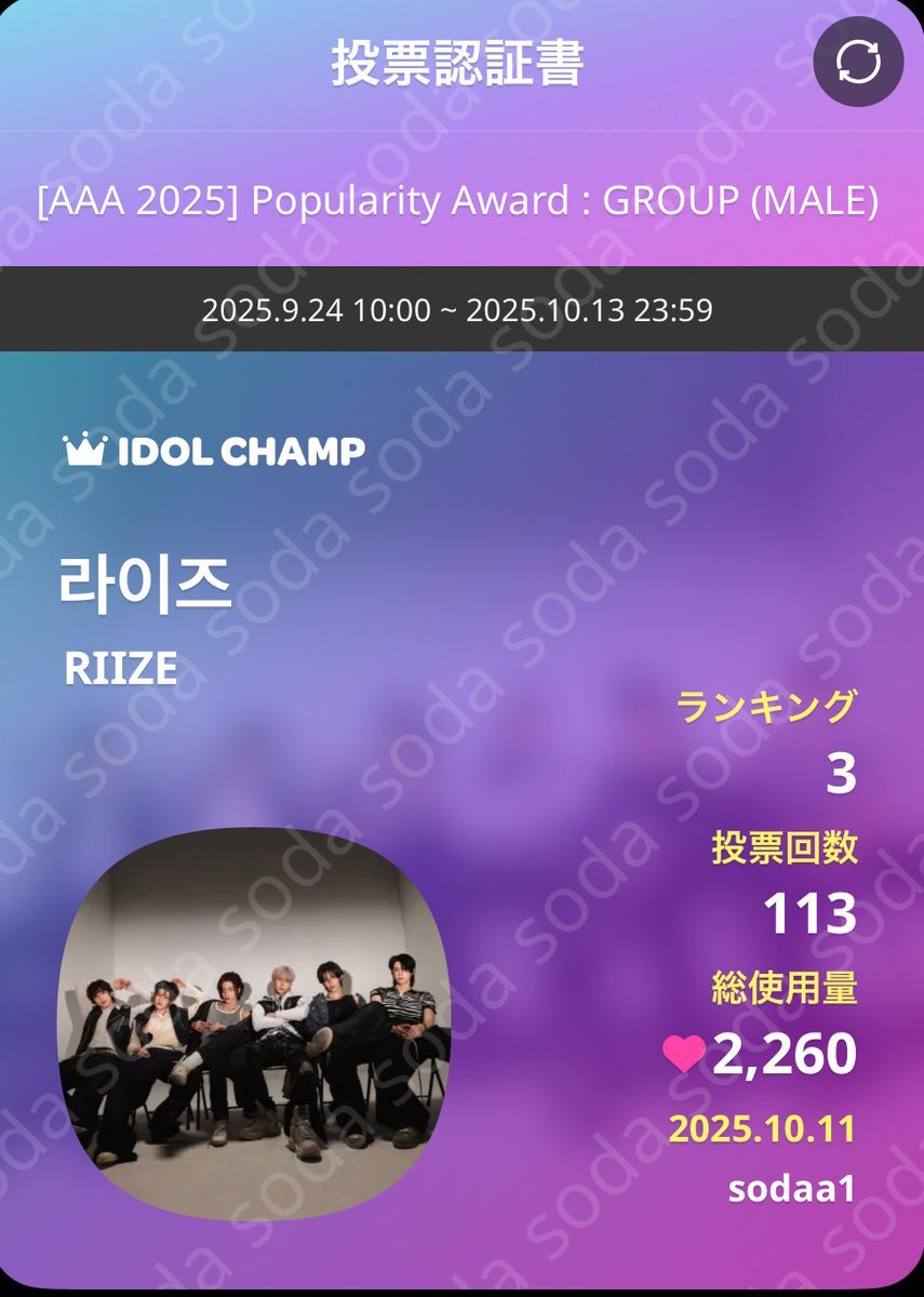 10/11 今日は回せないから💰のぶんで🗳️ AAA投票 ショウタロウ ウンソク ソンチャン ウォンビン ソヒ アントン ライズ #BRIIZEvoteRIIZE #VOTEforRIIZE #RIIZE #라이즈 @RIIZE_official #RIIZE投票 #BRIIZEVoting pic.x.com/1S20ct2E2V