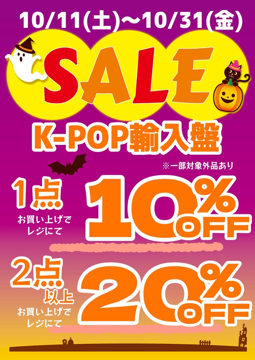 【📣スペシャルセール!】 / 🎃K-POP輸入盤🎃 1枚10%OFF! 2枚以上で20%OFFセール!! \ 👀久々の開催お待たせしました! このチャンスをお見逃しなく❣️❣️ #バンダレコード #ららぽーと新三郷 #BTS #SEVENTEEN #TWICE #NCT #StrayKids #ATEEZ #TXT #ENHYPEN #aespa #IVE #LE_SSERAFIM #RIIZE #ILLIT pic.x.com/7Cbxew4728