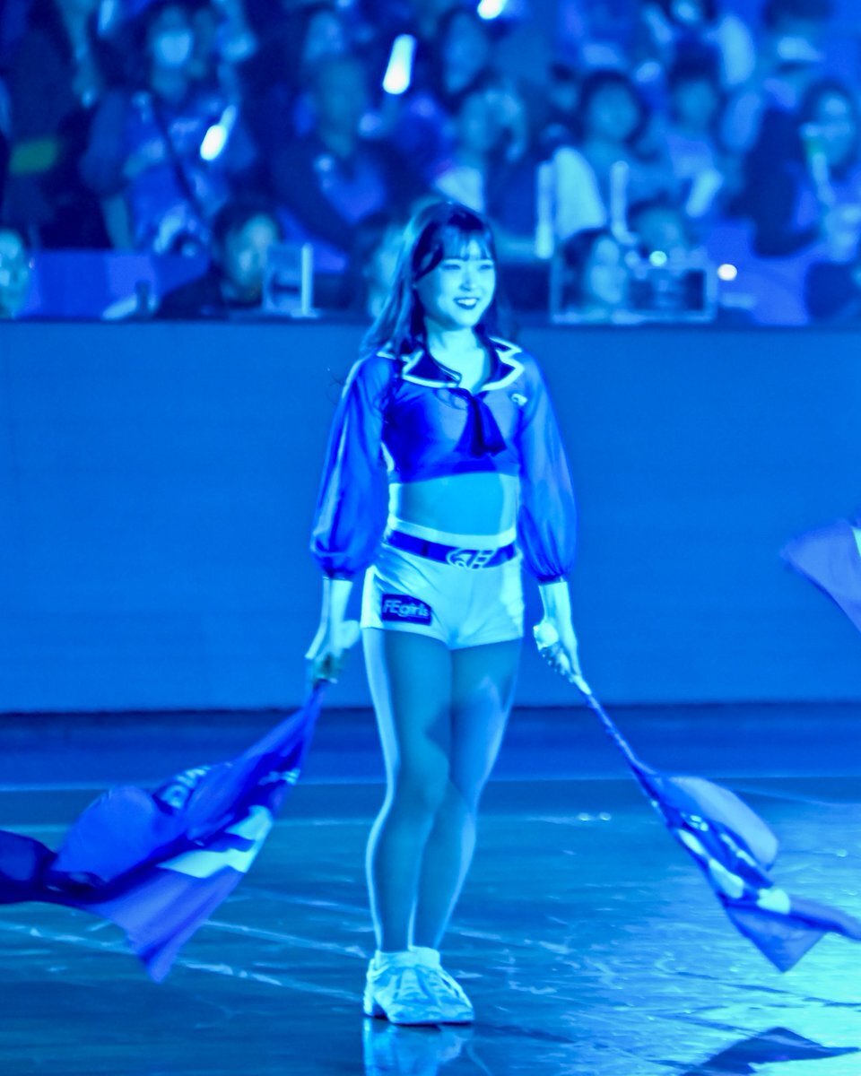 フラッグパフォーマンス好きなので見惚れてしまった💙 昨シーズンもやってたかな? とにかく素敵でした🥰 #ファイティングイーグルス名古屋 #FEgirls #Rin @枇杷島スポーツセンター pic.x.com/GhHwFtvMvp