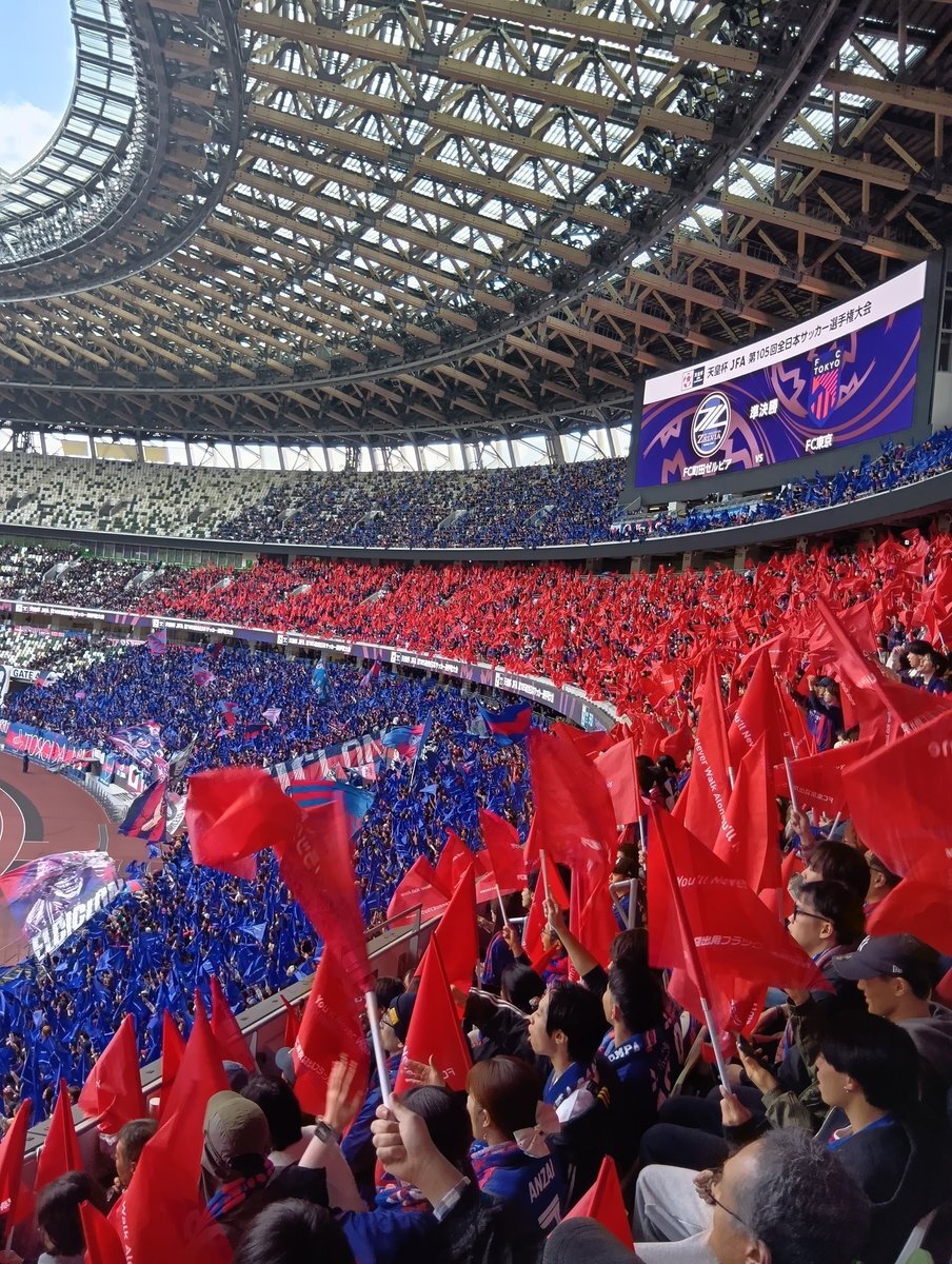 AGスウェットでサッカー天皇杯準決勝FC東京‐町田戦観戦⚽️以前ドロンパがTokyo CallingをダンスしていたのでFC東京サイドで応援🔵🔴長友選手もRINさんばりの刈り上げで120分間フル出場💇♂️東京ダービー堪能しました✨ #天皇杯 #FC東京 #長友佑都 #RIN #新しい学校のリーダーズ pic.x.com/m0o7DoYvPi