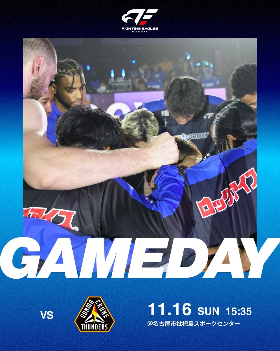 🔥 𝙂𝘼𝙈𝙀 𝘿𝘼𝙔 🔥 🕐11/16(日)15:35 TIP OFF 🆚#群馬クレインサンダーズ 📍名古屋市枇杷島スポーツセンター #FE名古屋 #FEVER #Bリーグ ⬇️イベント情報はこちら fightingeagles.jp/lp/game_202511…