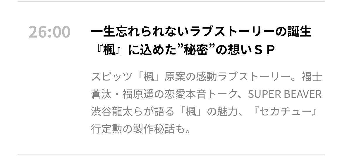 一生忘れられないラブストーリーの誕生『楓』に込めた”秘密”の想いSP 12月17日(水曜) 2:00-2:30 #一生忘れられないラブストーリーの誕生『楓』に込めた”秘密”の想いSP #宮近海斗 #RKB毎日放送 bangumi.org/si/-1?si_type=…