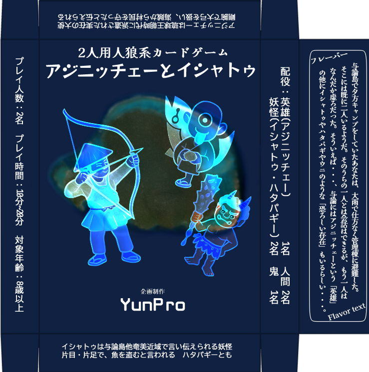 #RTお願いします 二人用人狼系カードゲーム『アジニッチェーとイシャトゥ』を先行プレイ&感想ポストか動画投稿してくださる方3名募集🙏 条件:DMで送付先を伺うのでフォローお願いします 本作は英雄/人x2/妖怪x2/鬼で構成、得点を競い合う10~20分のプレイ時間です。人狼ファンをお待ちしてます🙏 pic.x.com/EoQFeUe9IM