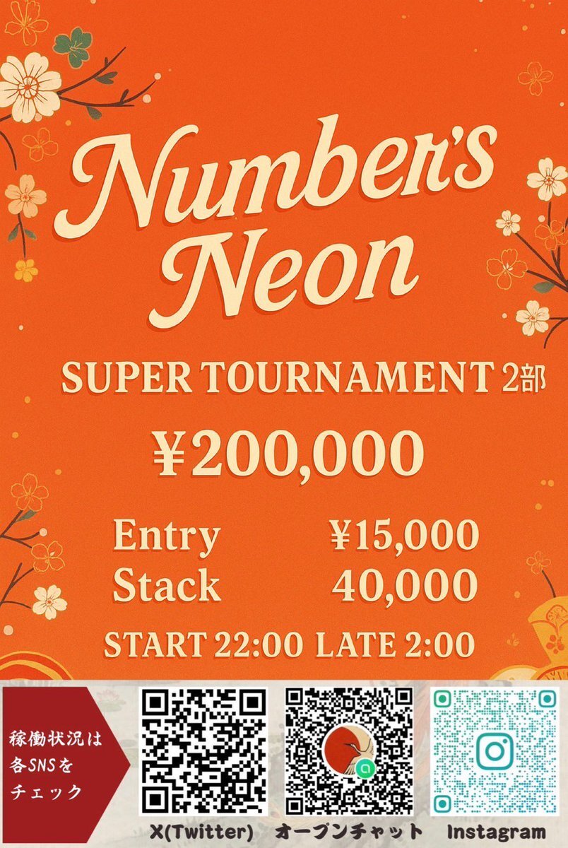 📣 ゲリラ開催 決定!! Number’s Neon SuperTournament 埼玉県初!?現金プライズ🔥 協賛:新所沢リップショコラ様 総額250,000円 ※ エントリー数でプライズさらにUP↑↑ 🎁フォロー&リポストキャンペーン🎁 11/29(土) SuperTournament開催記念🔥 1,2部制 無料招待:1名様ずつ