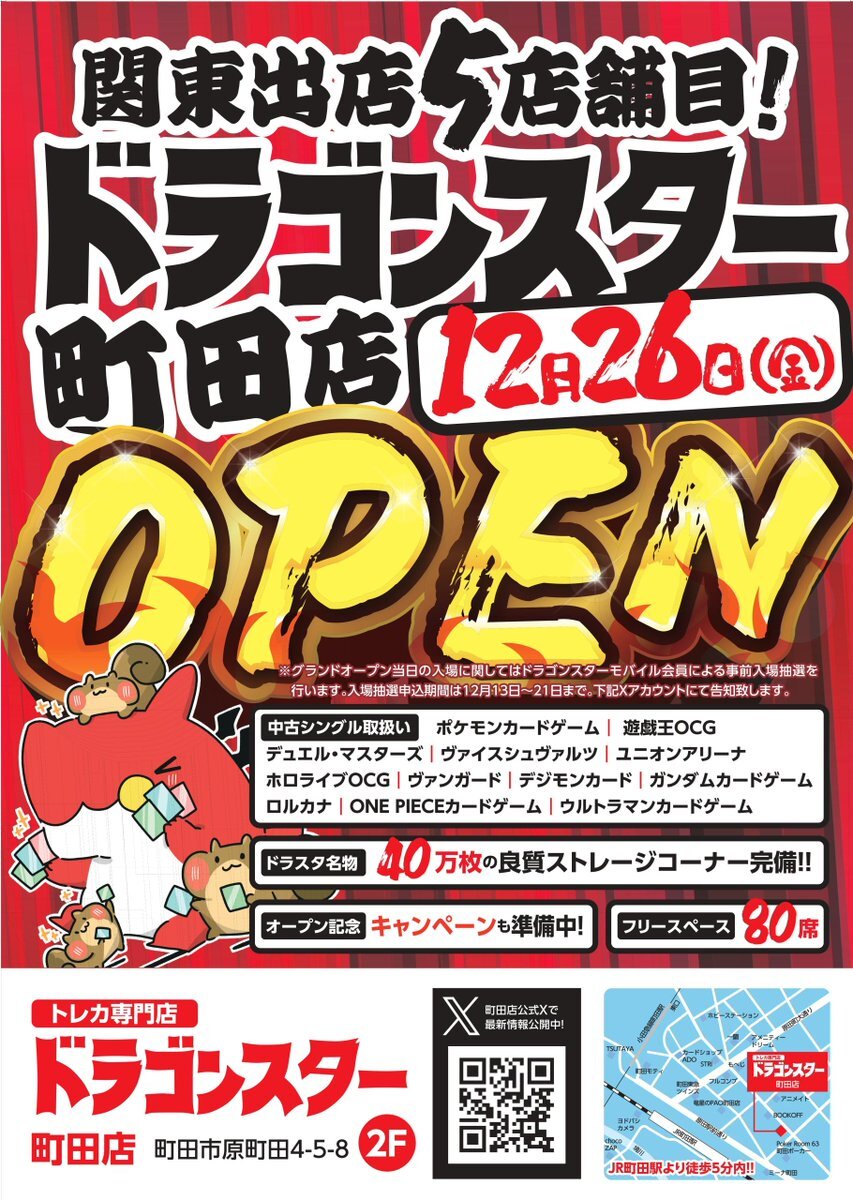 \ドラゴンスター町田店/ 🌸12月26日🆕新規オープン🌸 ✅取り扱いジャンル地域最大級‼ ✅大型デュエルスペース完備✨ ✅超大型ストレージコーナー設置♪♪ #RTキャンペーン🎁 第2弾も開催中です✌✌✌ 続々新情報発信していきます👍👍 乞うご期待ですよ🔥🔥🔥 pic.x.com/X3Z1zp9GLy