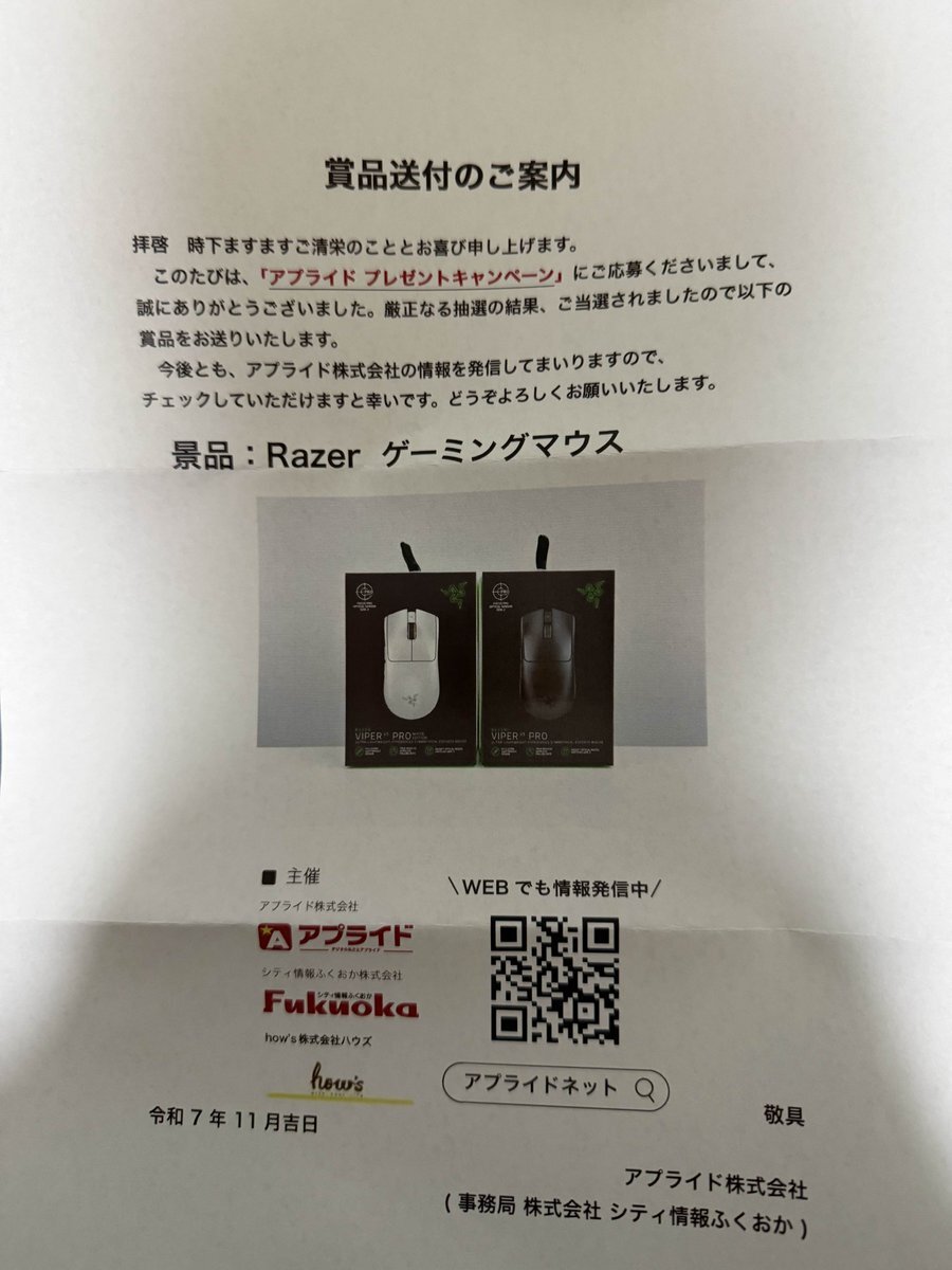 アプライト(@applied_group)さんからRazerゲーミングマウスが来ました ありがとうございますっ!🙇‍♀️ 持っていてものすっごく軽い! 今まで有線を使ってましたが無線でもいいかな?って思ってます 大事に使わせていただきますね #Razer #ゲーミングマウス #アプライト pic.x.com/3M4SZPJYMV