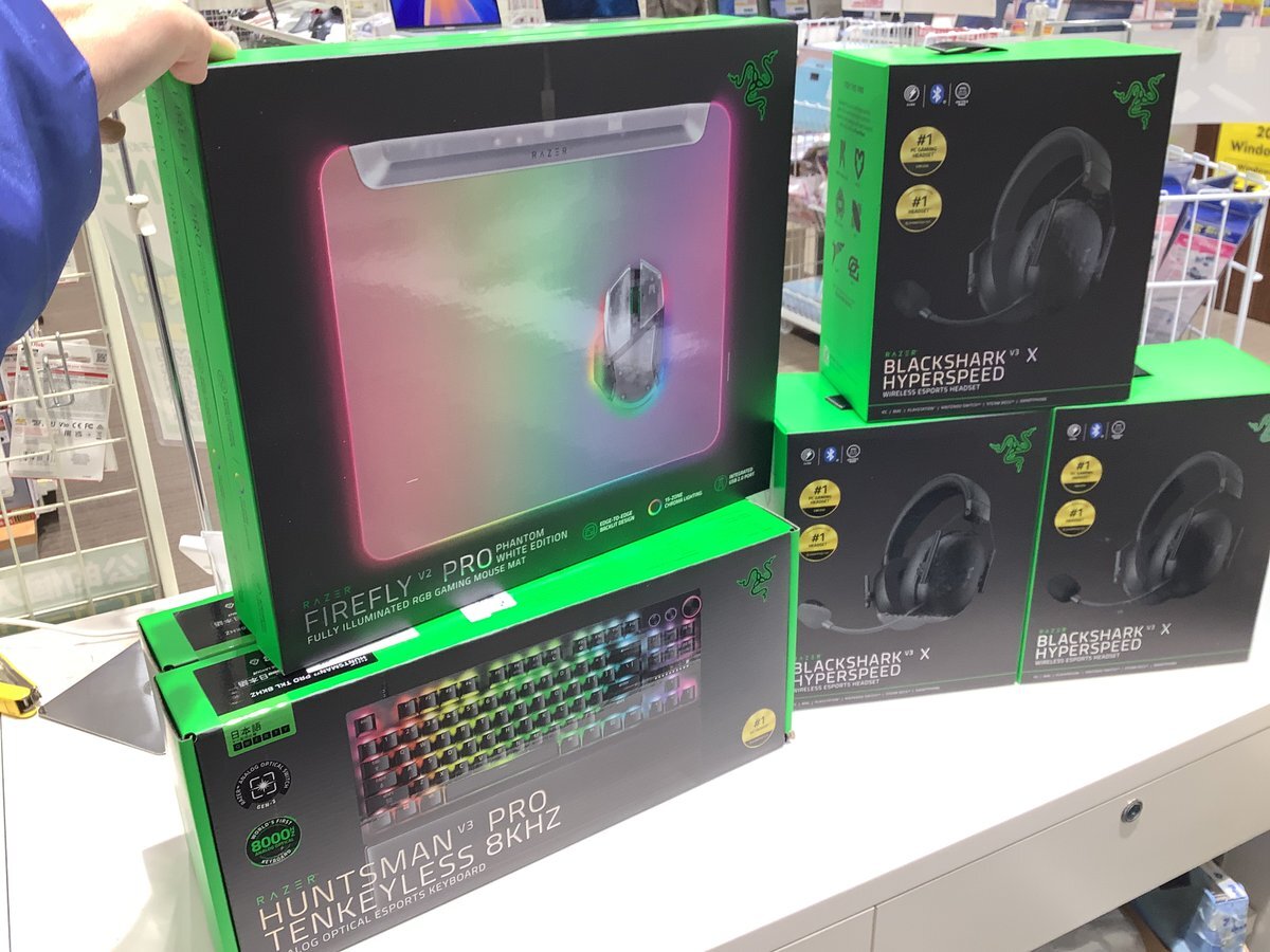 #RAZER 新入荷です!🐍 ・HUNTSMAN V3 PRO TENKEYLESS 8KHZ 36,980円 ・BLACKSHARK V3 X HYPERSPEED 16,980円 ・FIREFLY V2 PRO PHANTOM WHITE EDITION 18,780円 pic.x.com/wUuFSiMRyo