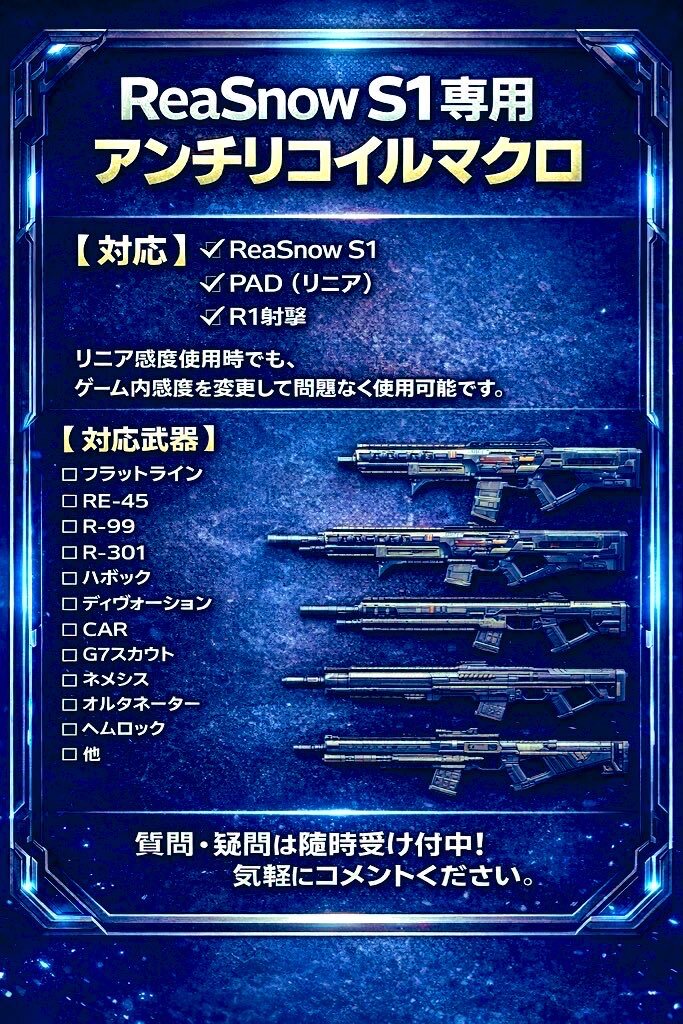 ありす+Xfor!のReasnow設定🔥 PAD詳細,クラシック キーマウ詳細 どちらも、アンチリコイル、ゲーム内設定、Reasnow設定が付属しております✨️ サポートもありますので是非ご検討ください。購入はリンクかDMから‼️ pic.x.com/lA5kCCzPfX #Reasnow #ReasnowS1 #APEX募集ps4 #APEX募集pc #teamXfor