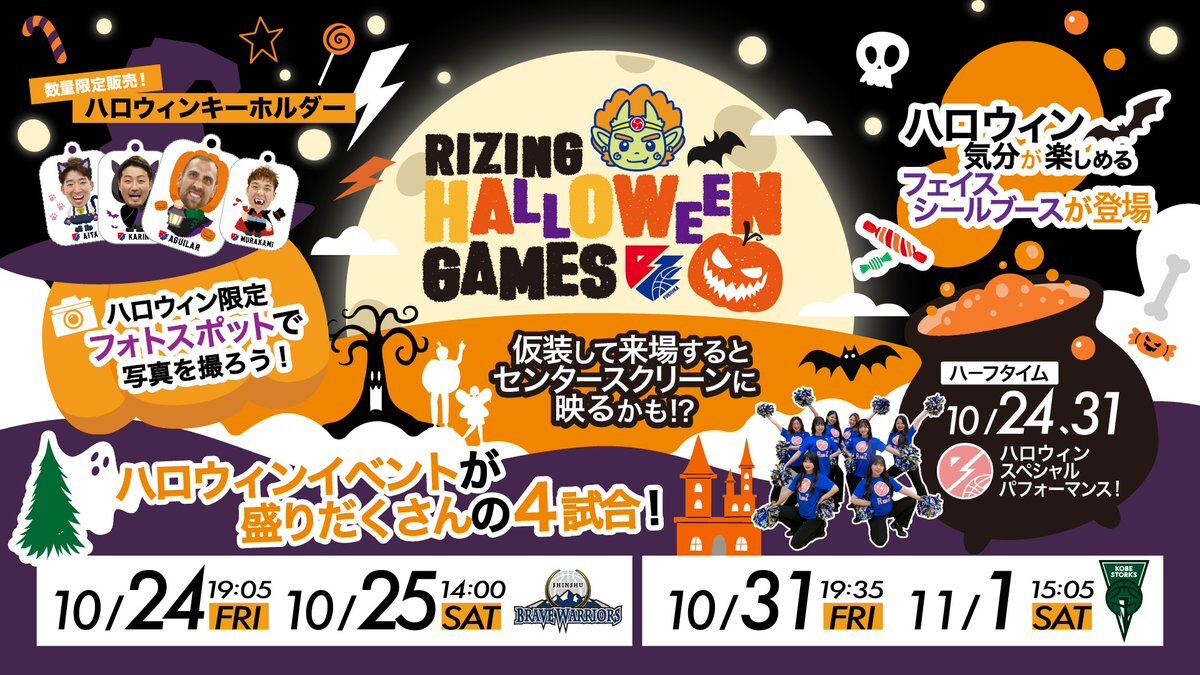 \👻RIZING HALLOWEEN GAMES!🎃/ 10/24、25の #信州ブレイブウォリアーズ 戦、10/31、11/1の #神戸ストークス 戦のホーム4試合は、アリーナでハロウィンを楽しもう!🧛🦇 この試合限定でフェイスシールブースやフォトスポットなどが設置されます🕸️🕷️