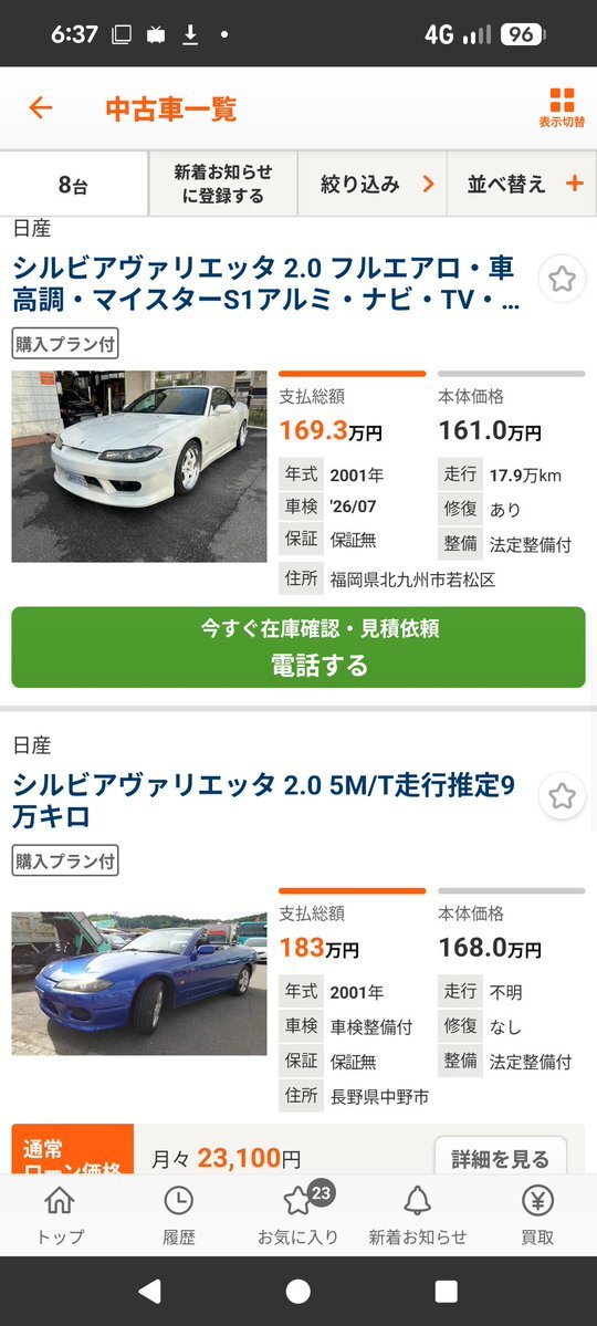 なんでこの2台の15ヴァリエッタ安いのか…? 19万キロ走ってるやつでも400万円台のがあるのになぜ安いのか。 15には疎すぎて全くわからぬ… #s15 #シルビア #中古車 pic.x.com/PZSeLdxGHs